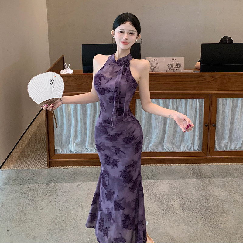 女装春季150cm显高加小码XXXS小个子旗袍连衣裙网纱包臀鱼尾裙女