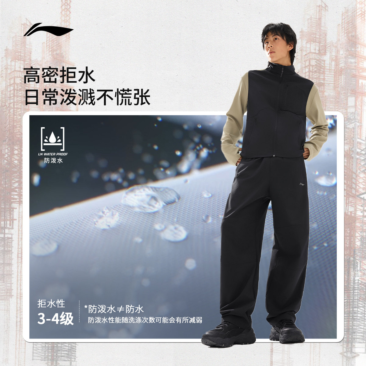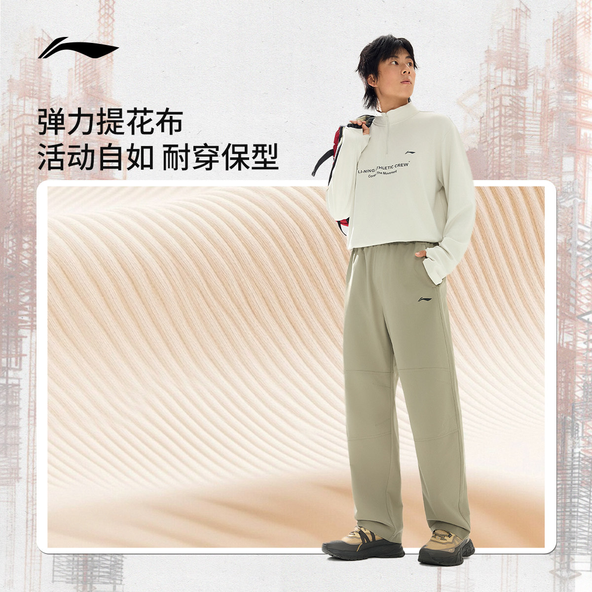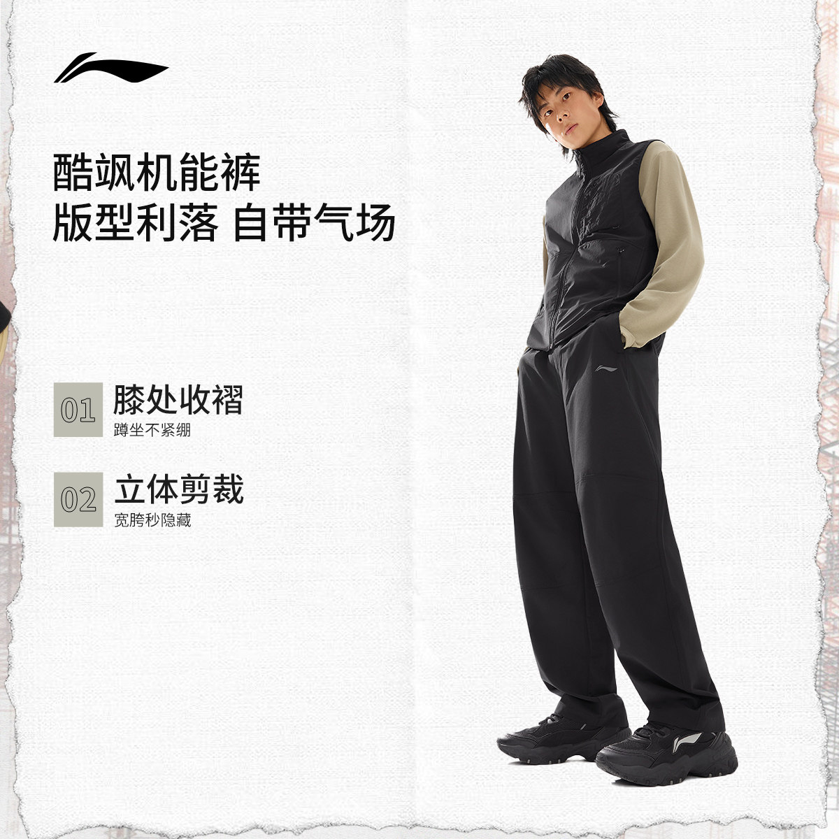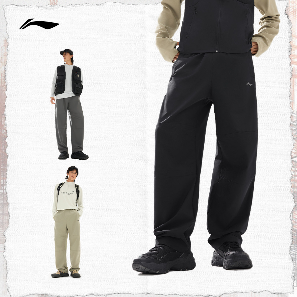 李宁C位裤丨男士新款春季男款户外裤直筒黑色裤子休闲裤运动长裤