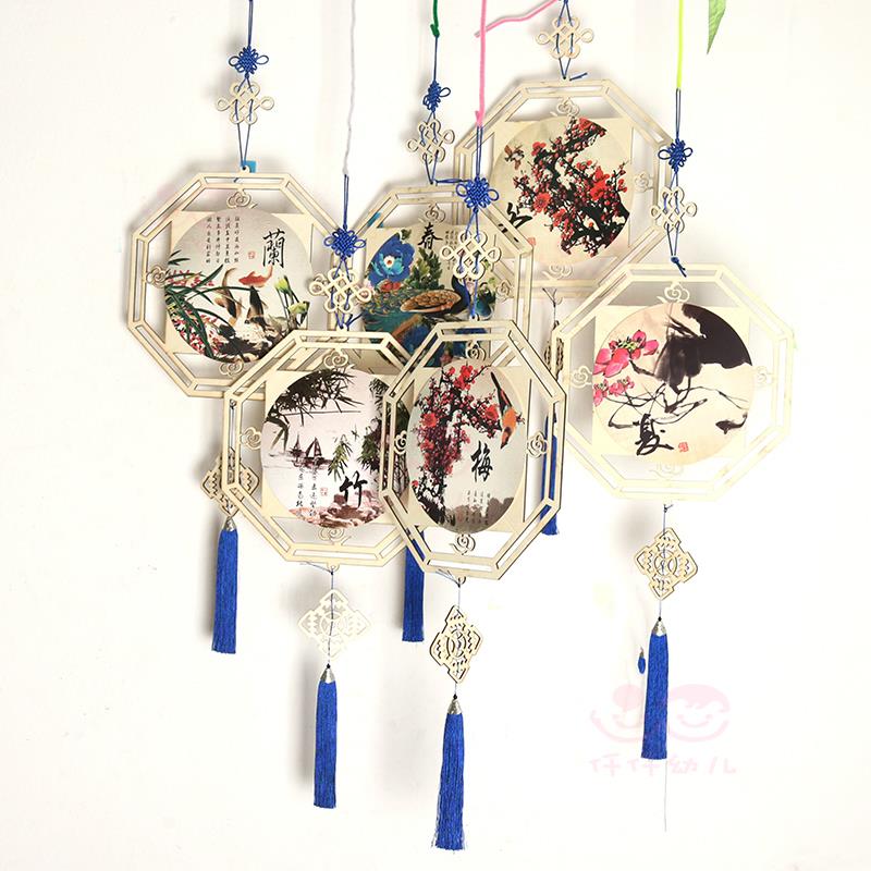 幼儿园装饰吊饰教室走廊墙面布置空中创意手工脸谱木质中国风挂饰