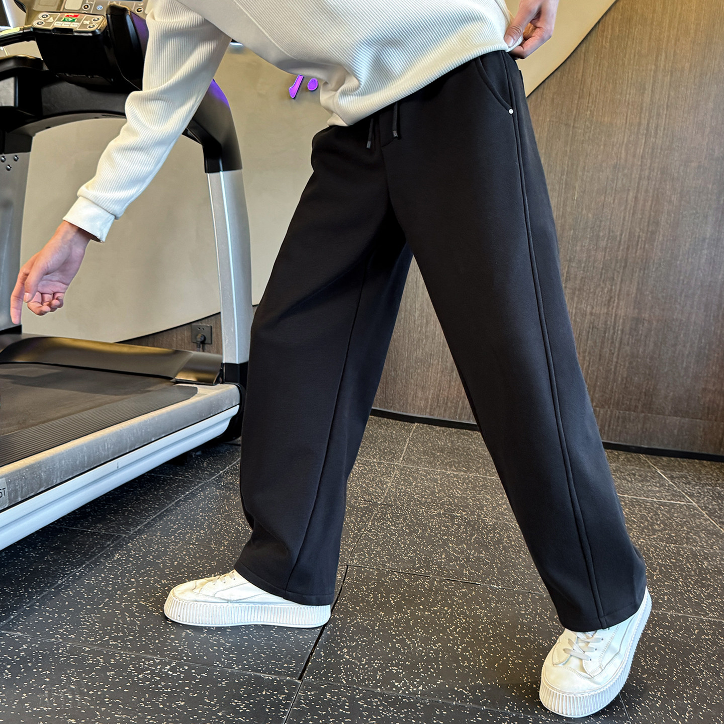 加绒裤子男秋冬季2025新款宽松直筒运动裤加厚美式休闲男士弯刀裤