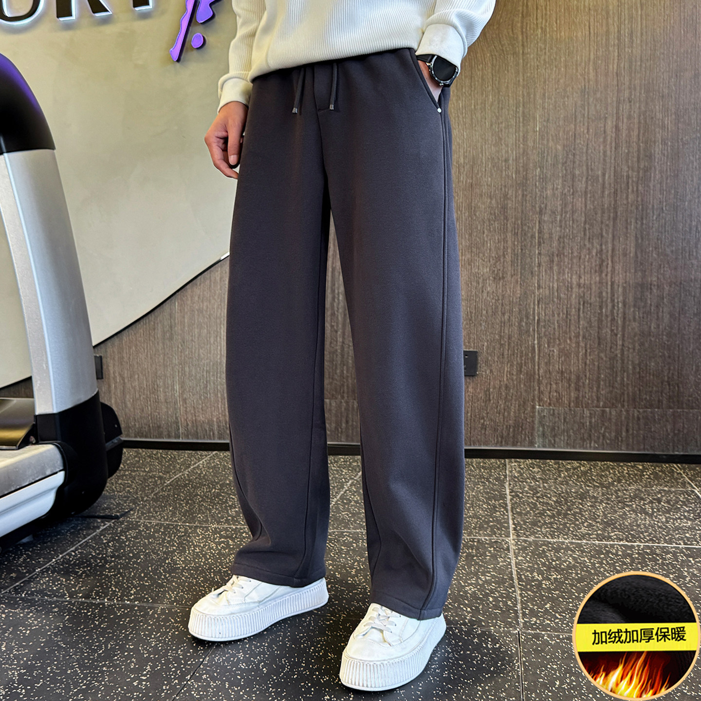加绒加厚款裤子男休闲运动弯刀裤