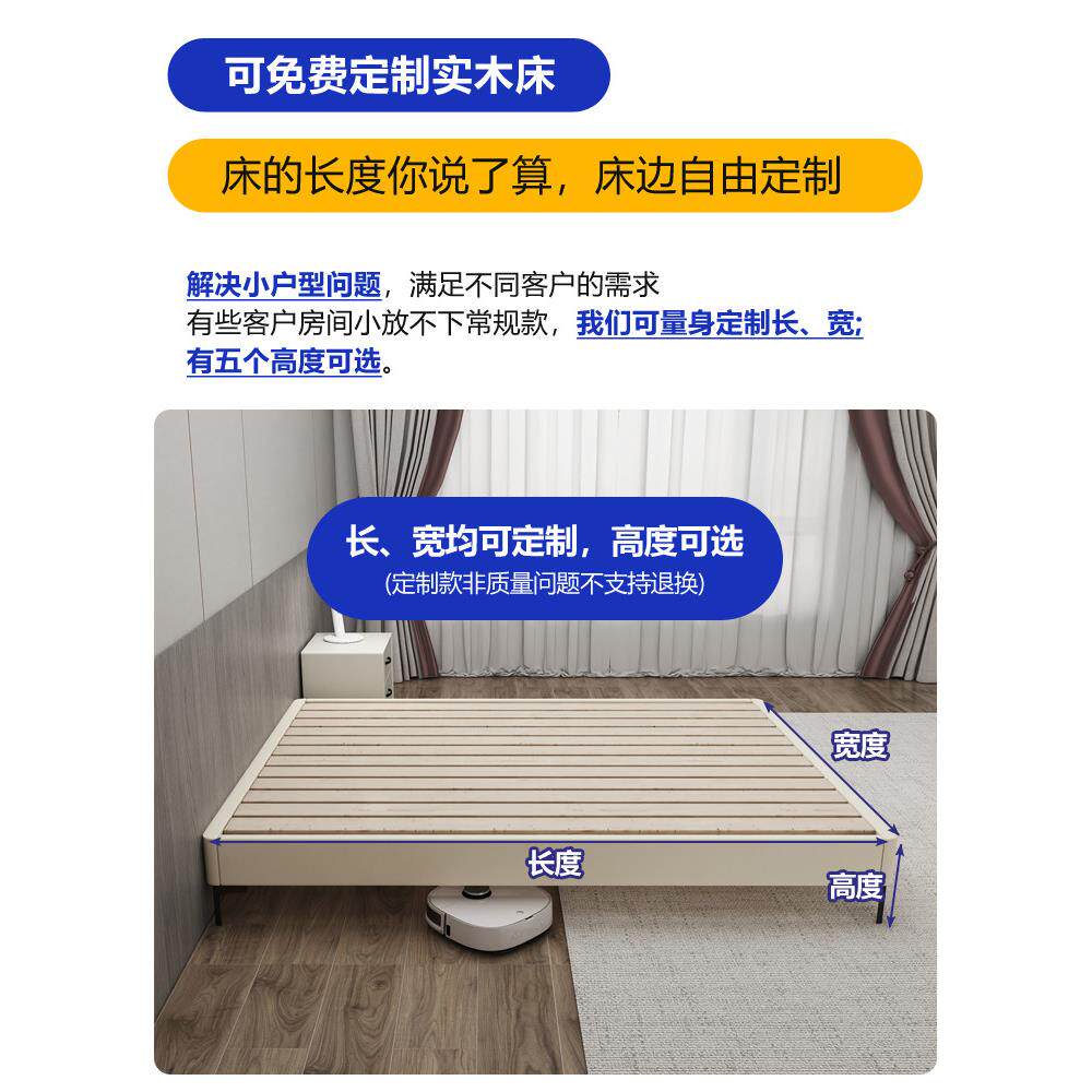 排骨架无床头床榻榻米床全实木齐边无靠背床小户型节省空间定制床