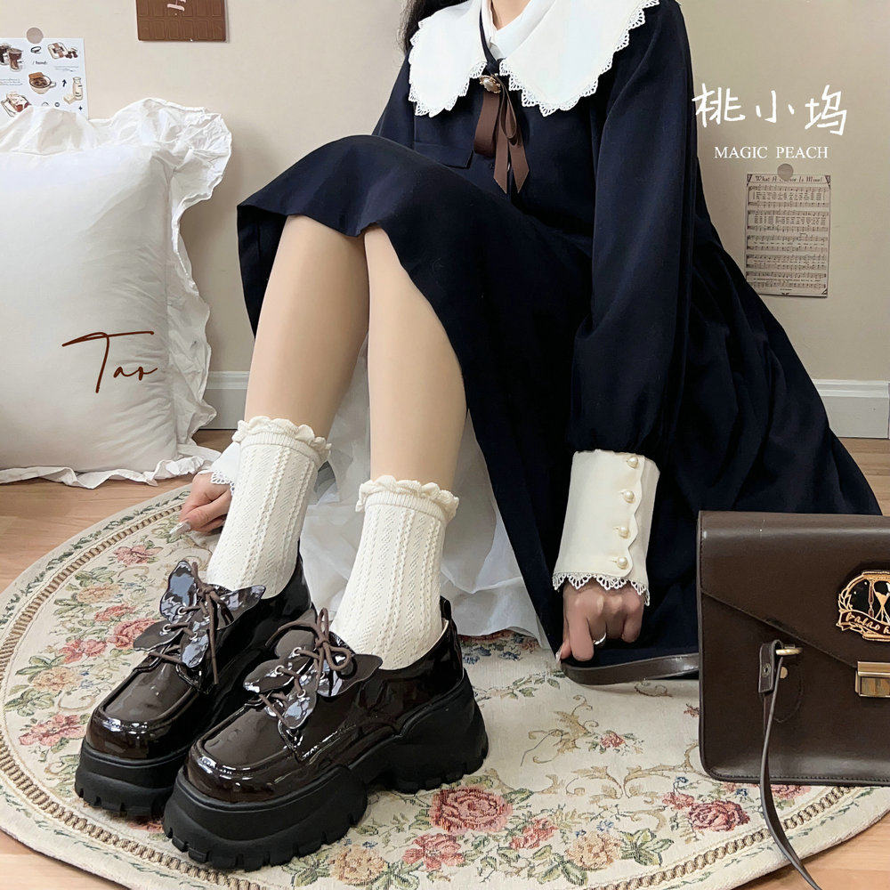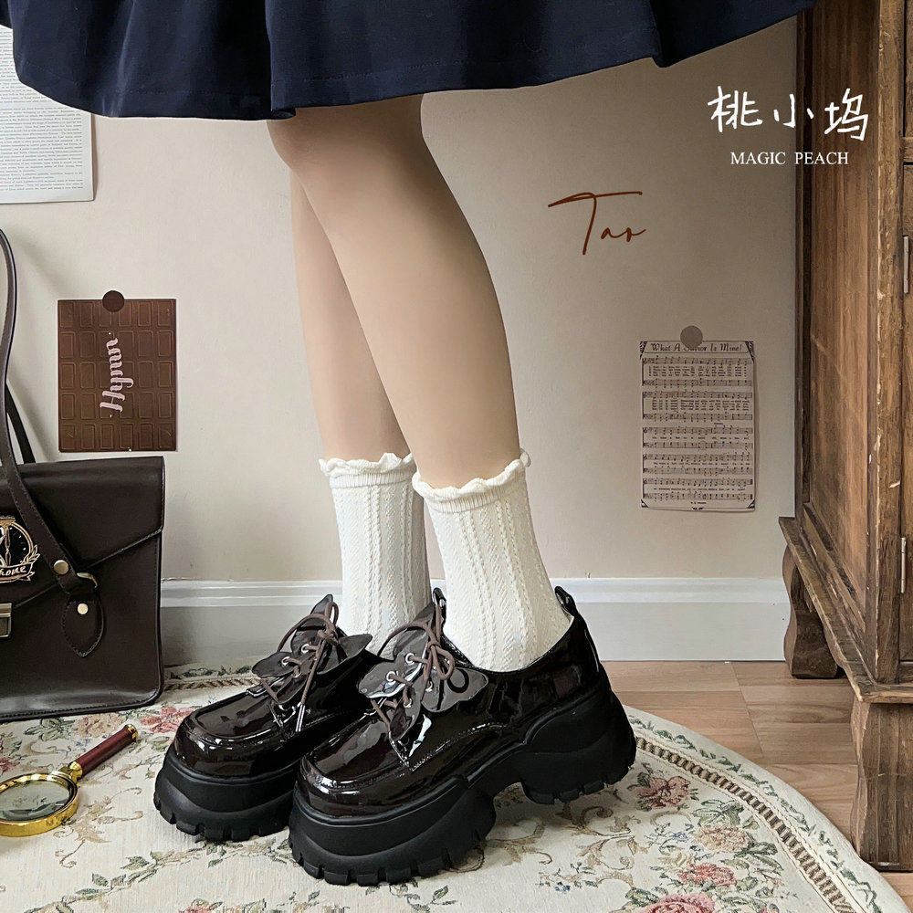 绝版清仓蝶舞原创小皮鞋桃小坞lolita学院风JK厚底单鞋女蝴蝶可拆