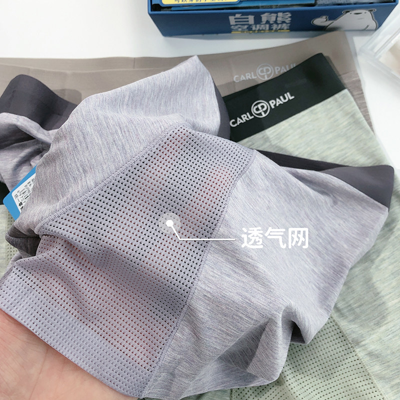 正品卡尔保罗白熊空调男士内裤莫代尔中腰无痕薄款透气平角裤