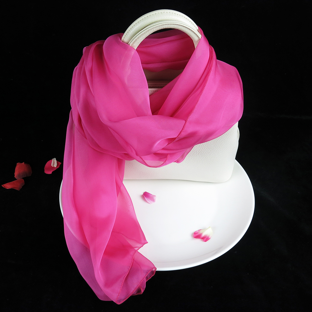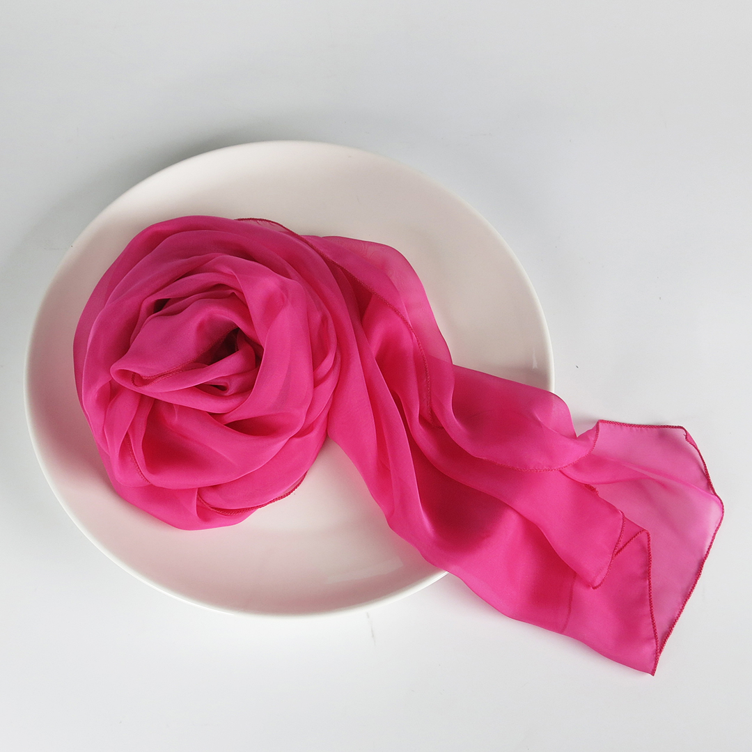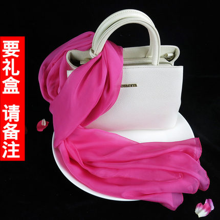 100%桑蚕丝丝绸丝巾女百搭春秋高级感披肩妈妈玫红色纱巾真丝围巾