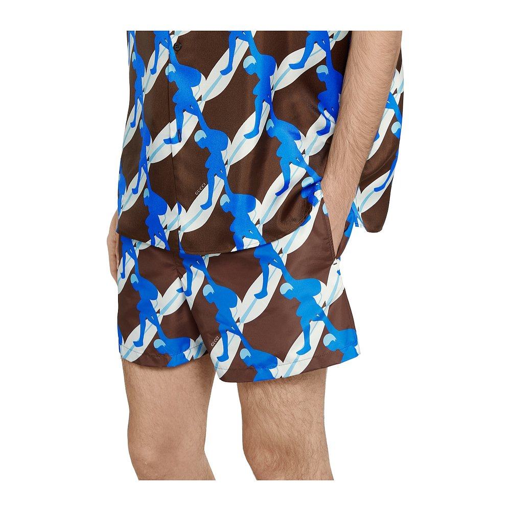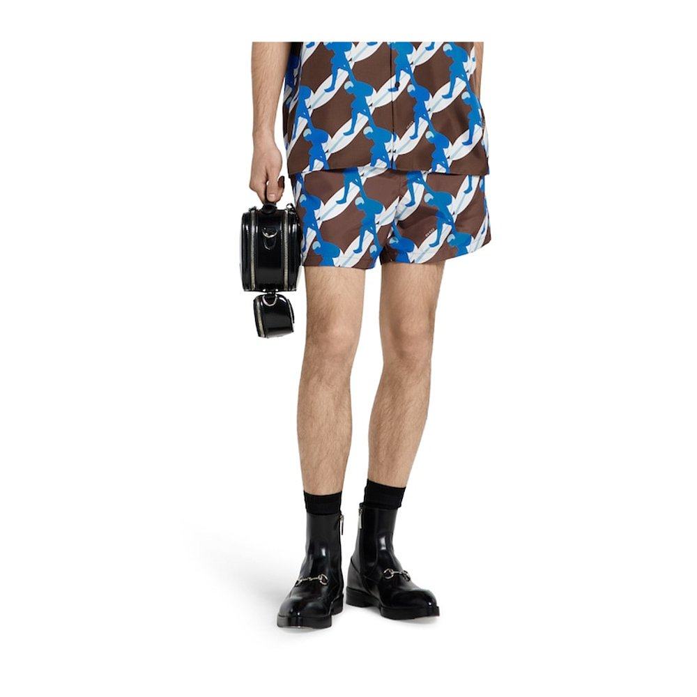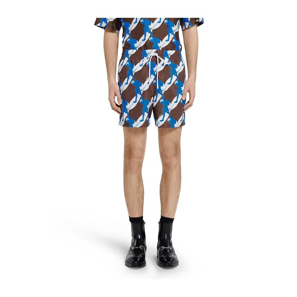 GUCCI 男士泳装 787899XHAKE2002 SS2025 蓝色 印花泳裤