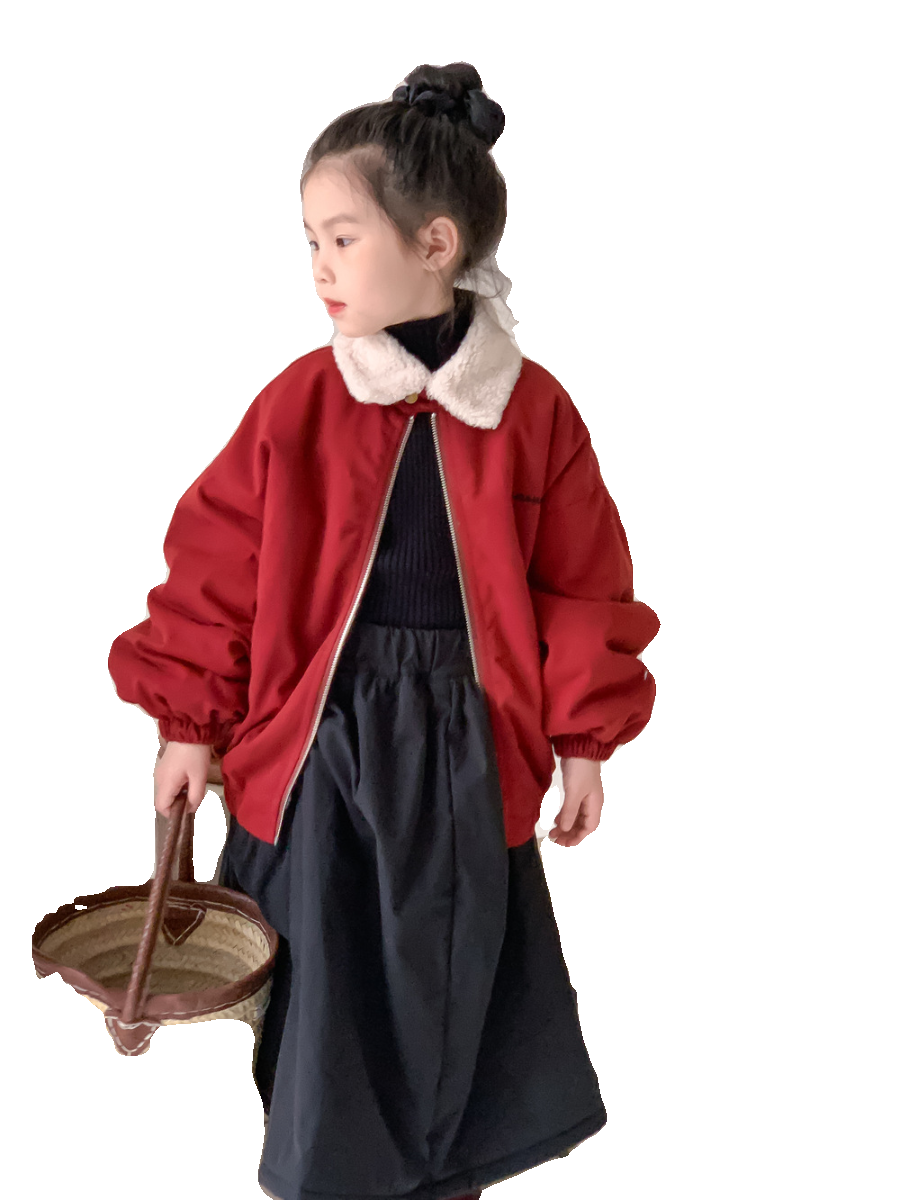 男童女童韩版毛领拉链夹克上衣童装新款冬款儿童宝宝加厚休闲外套