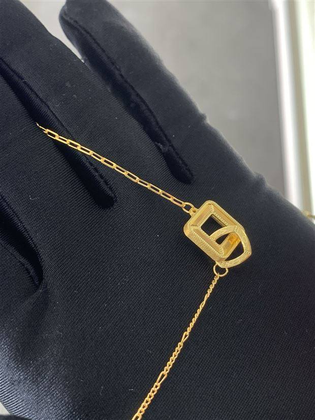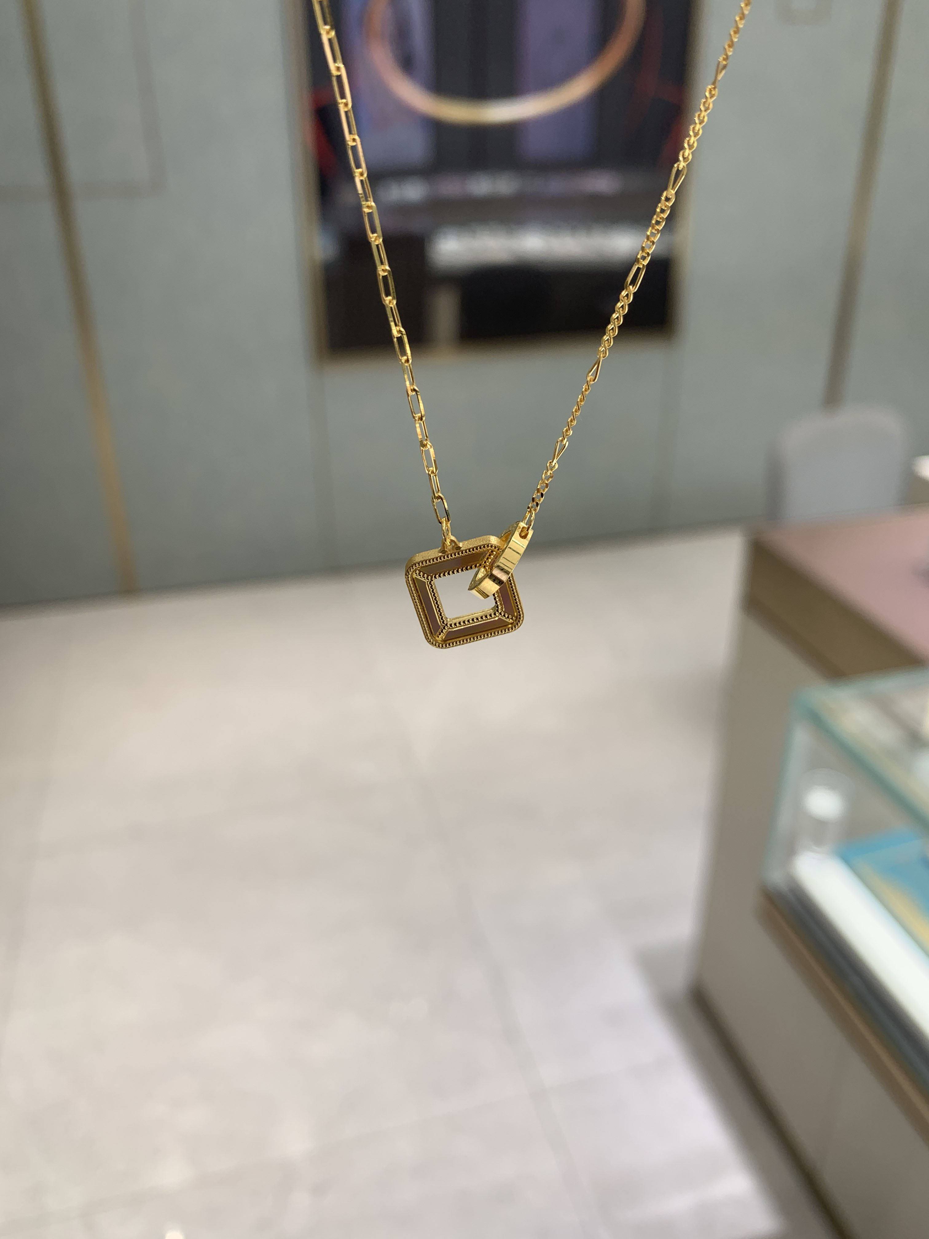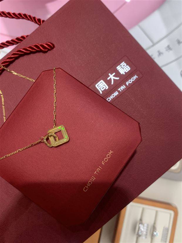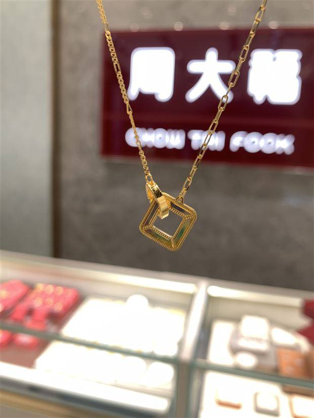复古方形双环黄金项链AB链周大福