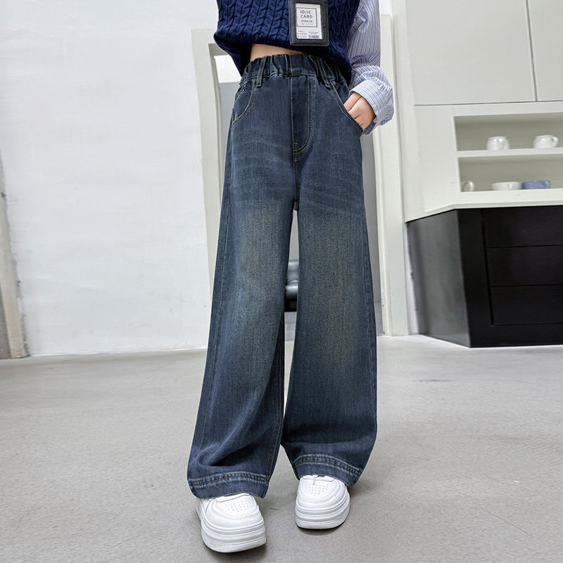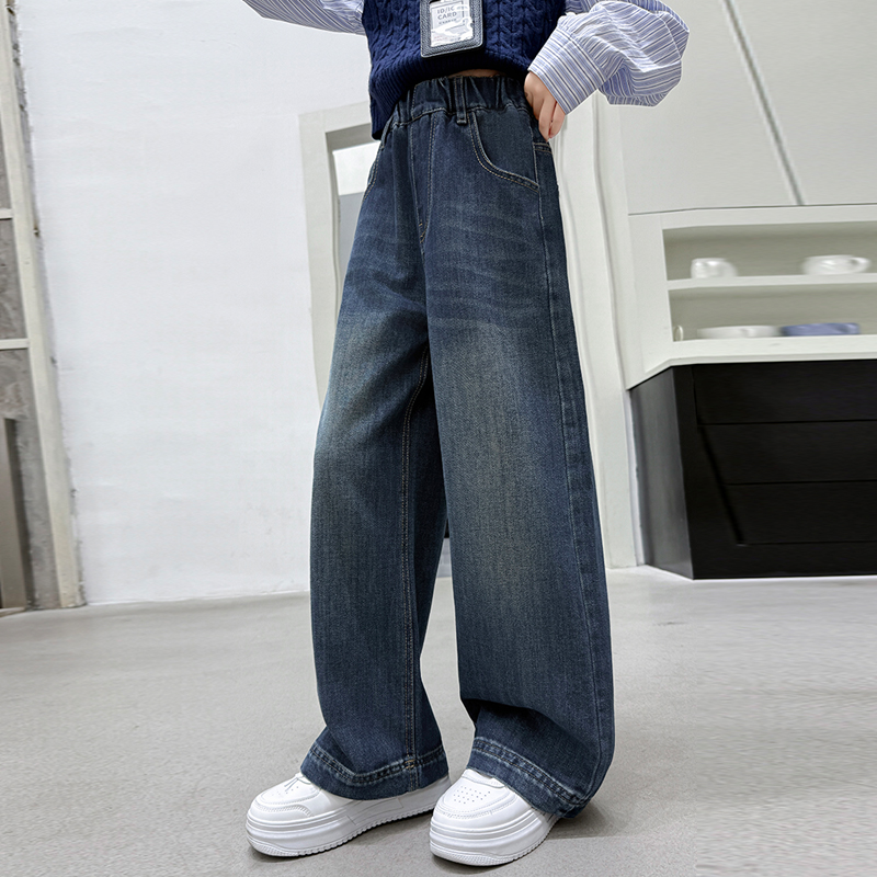 女童牛仔裤春秋季2025新款中大童韩版洋气休闲长裤宽松直筒阔腿裤