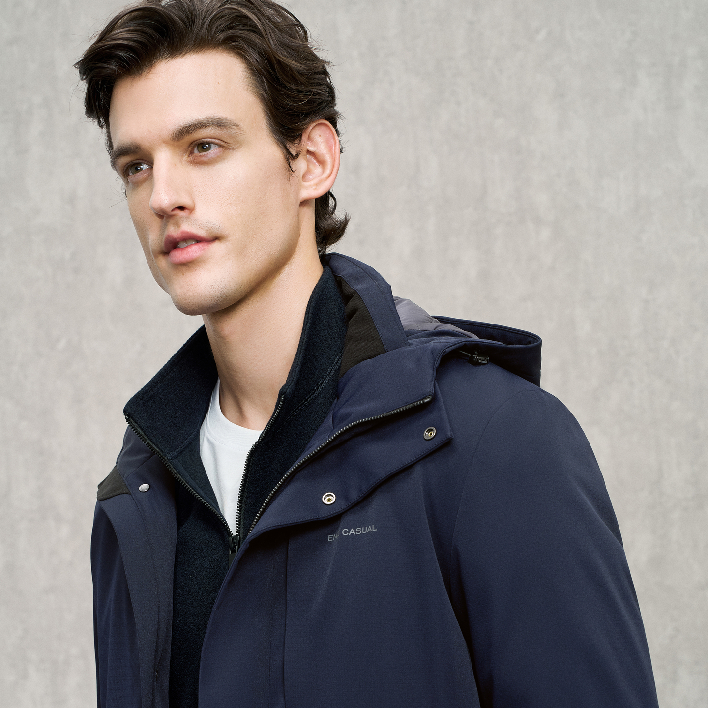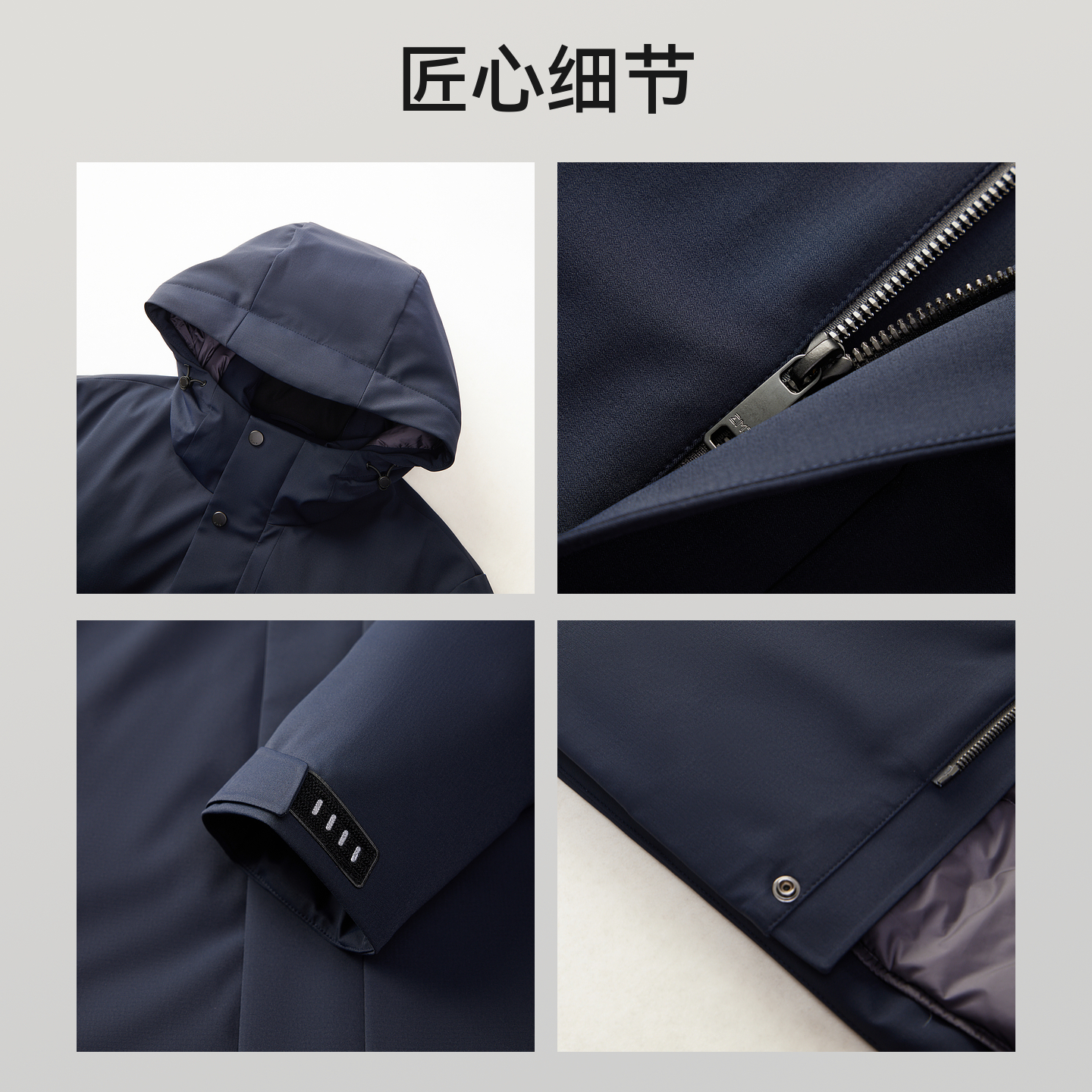 【三防】EMZ鄂尔多斯冬季加厚保暖中长款轻商务带帽鹅绒羽绒服男