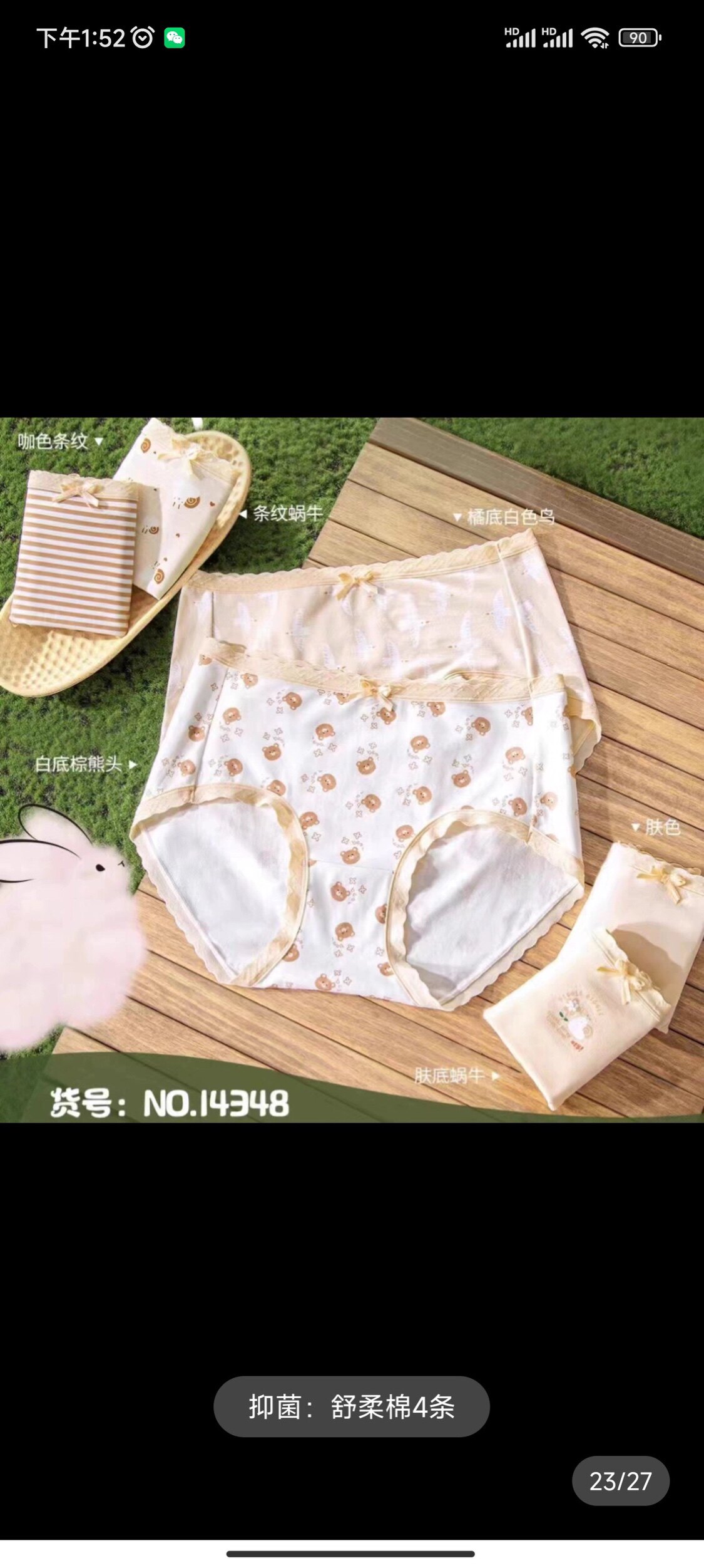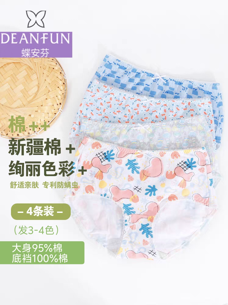 蝶安芬4条可爱弹力棉印花青年学生少女中腰中高腰平角内裤女士