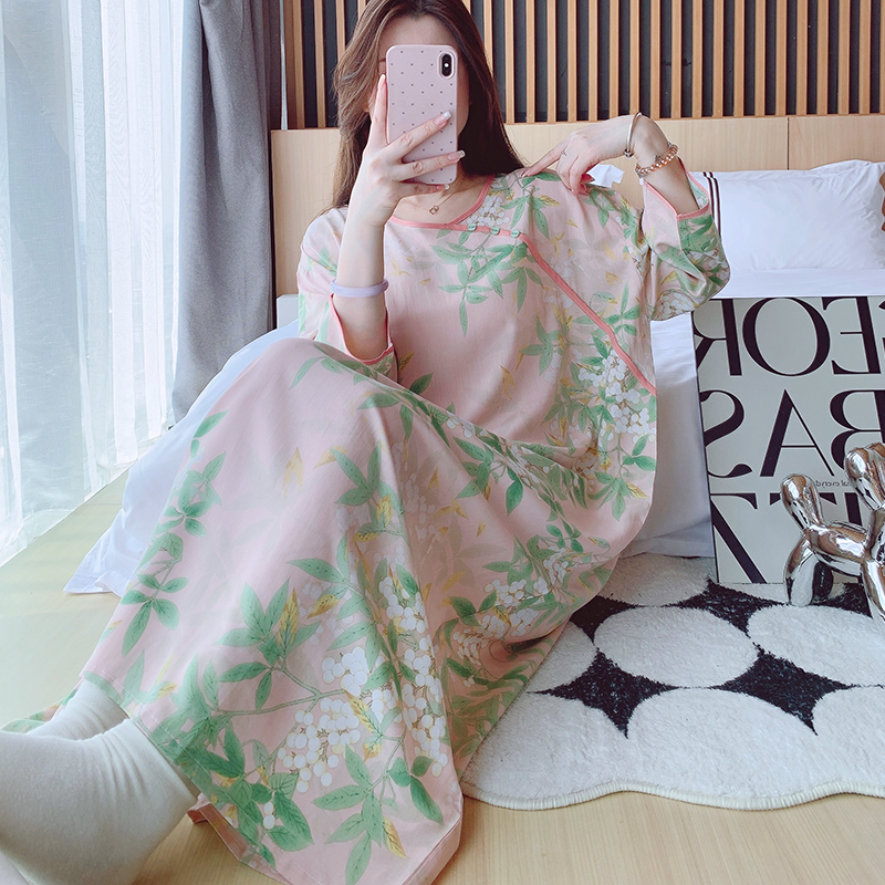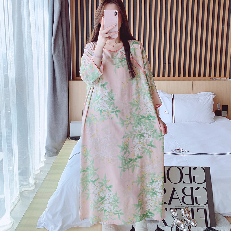 睡裙女夏季新款可外穿清新花朵家居服薄款宽松大码连衣裙薄长裙春