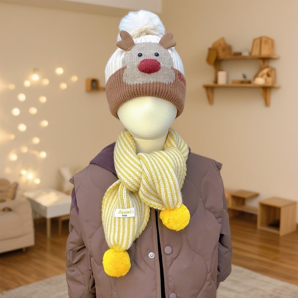 儿童围巾秋冬季保暖针织毛线护脖男女宝宝防寒围脖可爱毛球围巾