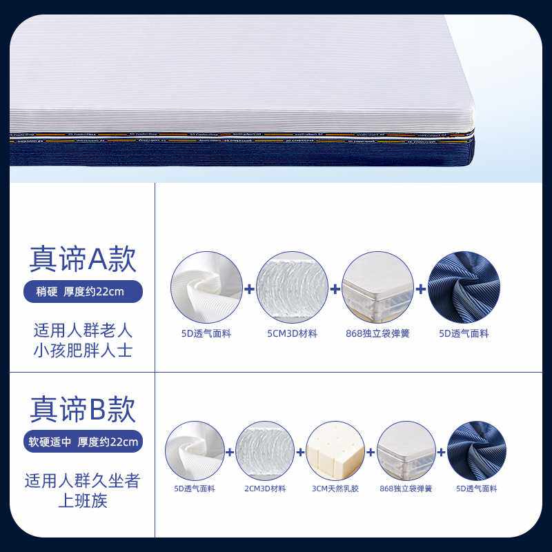 5D面料软硬两用可拆洗乳胶床垫3D纤维独立弹簧护脊家用床垫