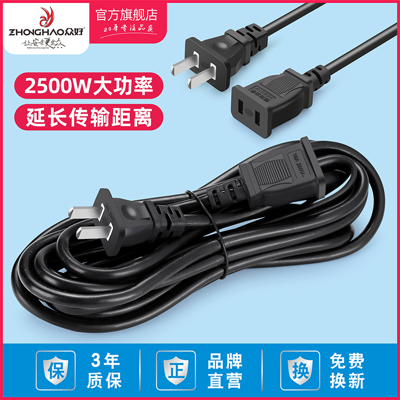 吸尘器电源延长线二插电动车充电电瓶车空调监控电视机加长线插座