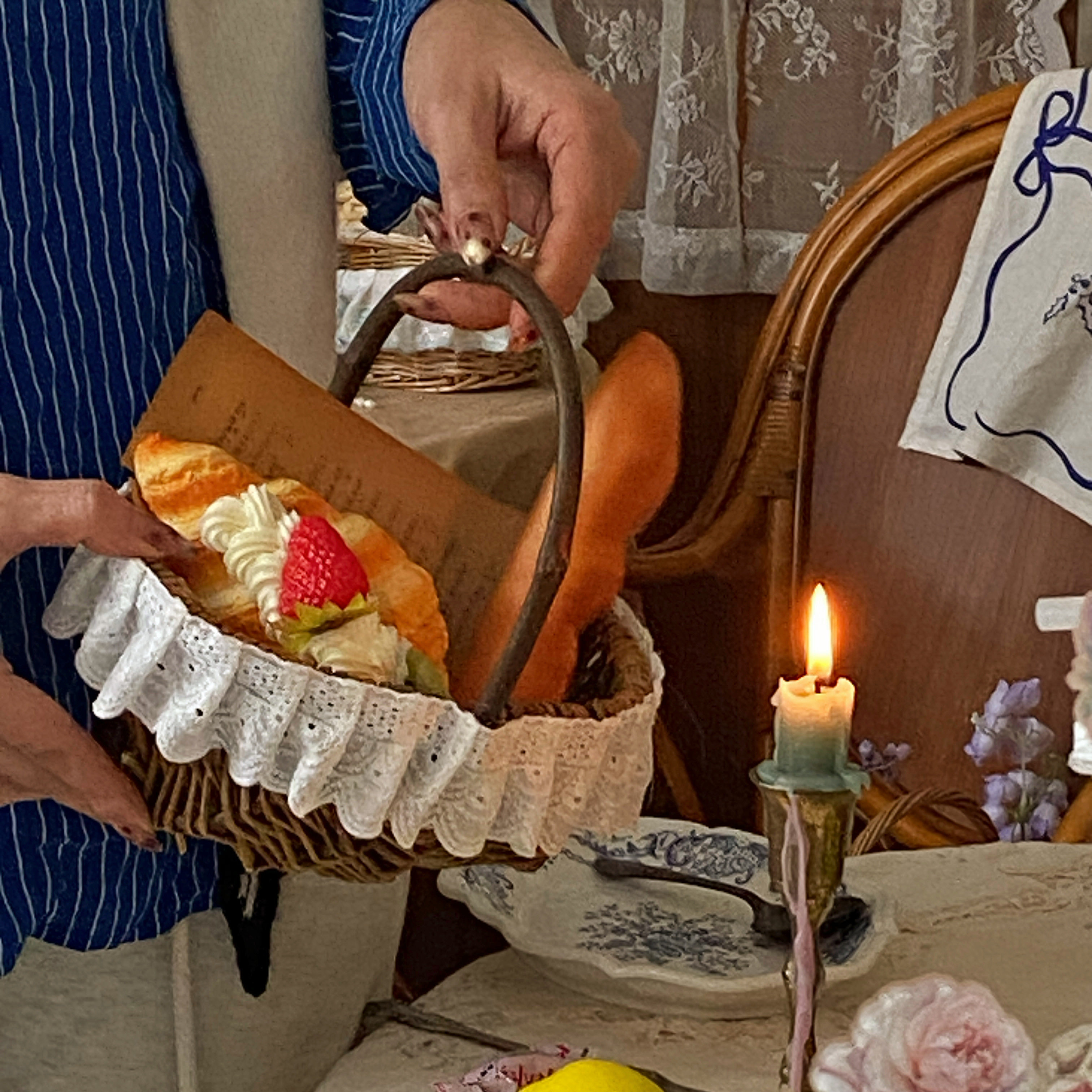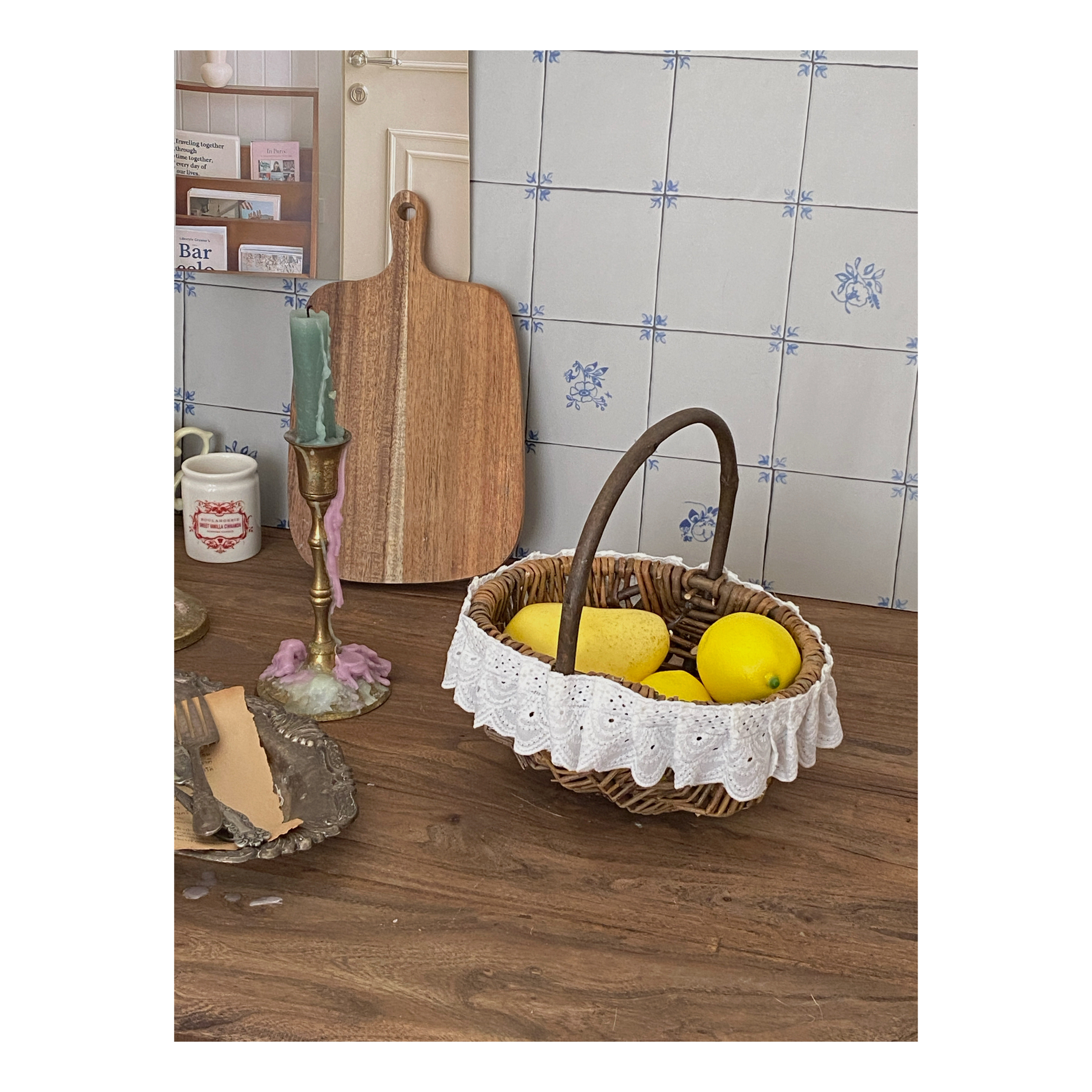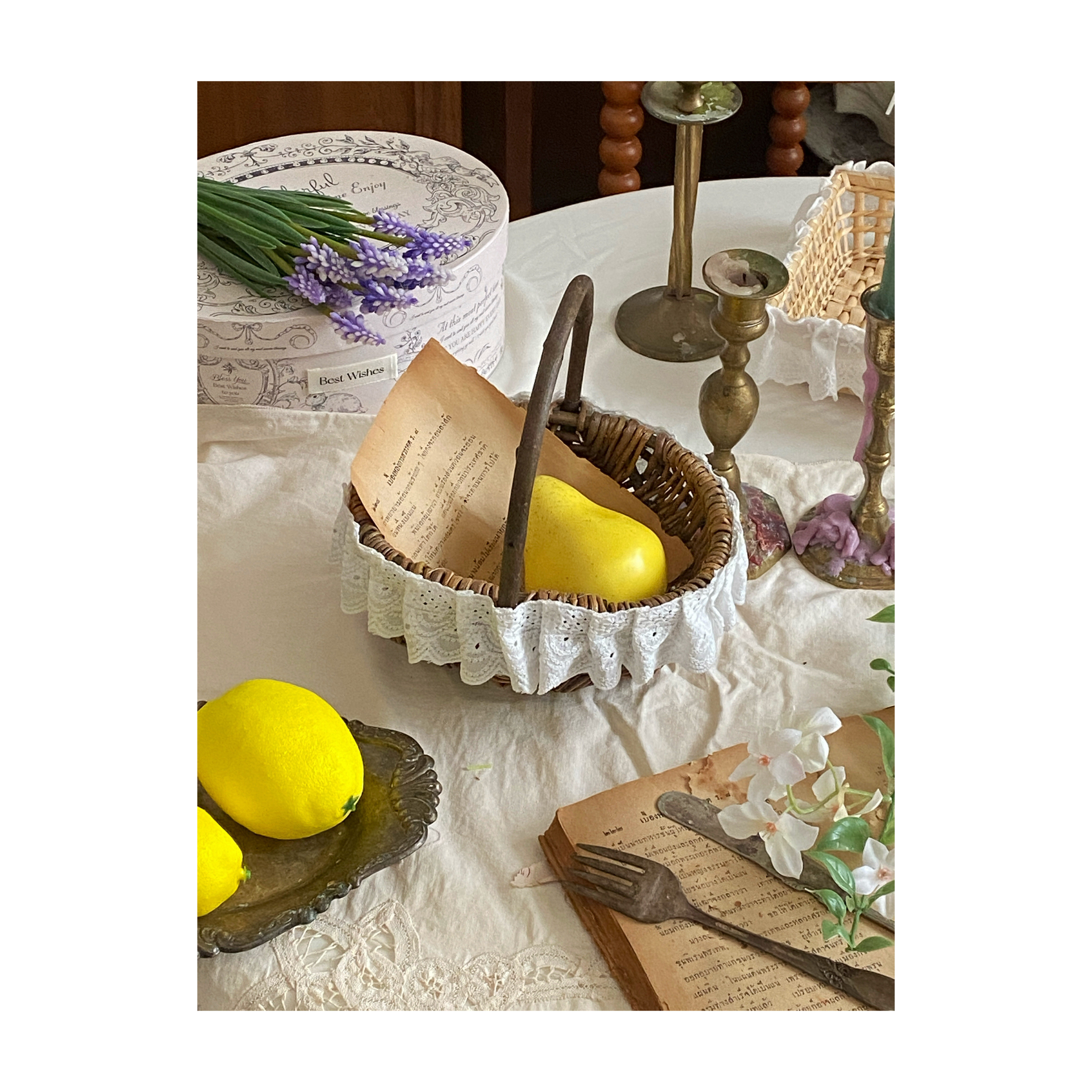 原创法式田园风柳编手提花篮蕾丝花边手提篮收纳篮水果篮收纳筐