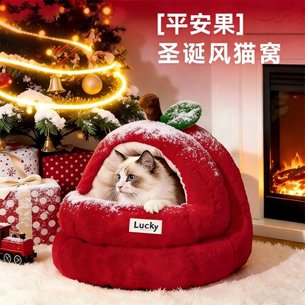 圣诞苹果冬季保暖猫窝半封闭蒙古包冬天狗窝中大尺寸安全感宠物窝