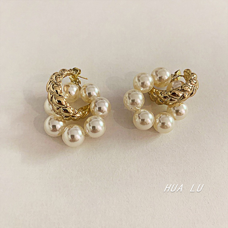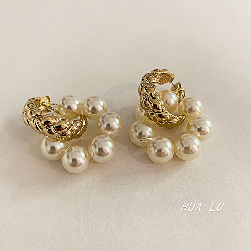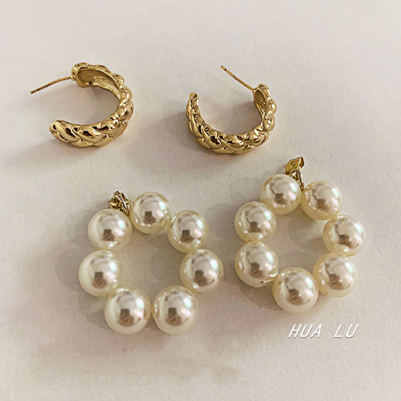HUALU-杂志时尚感 韩国珍珠大耳圈耳环女气质复古港风高级感耳夹