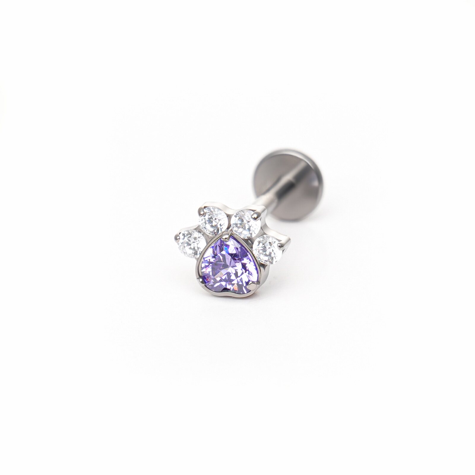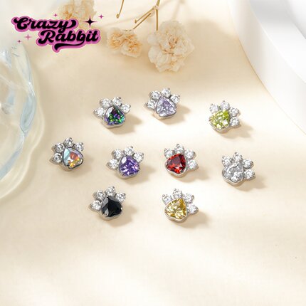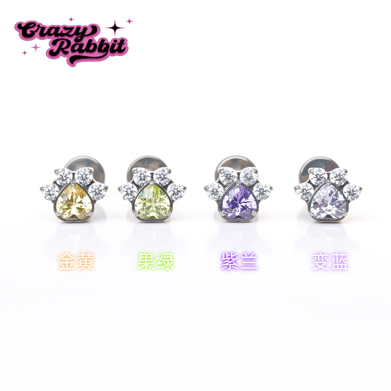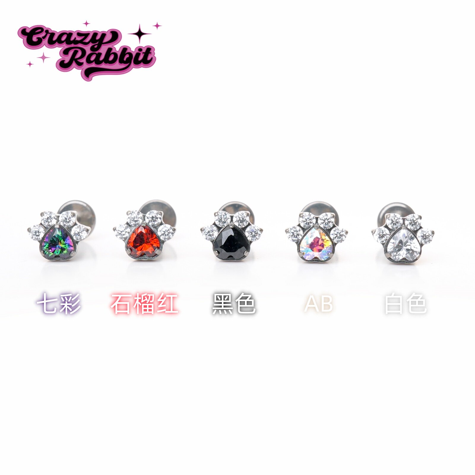 CrazyRabbit 爆闪爱心猫爪钛合金耳钉内螺纹耳骨钉甜酷唇钉耳饰品