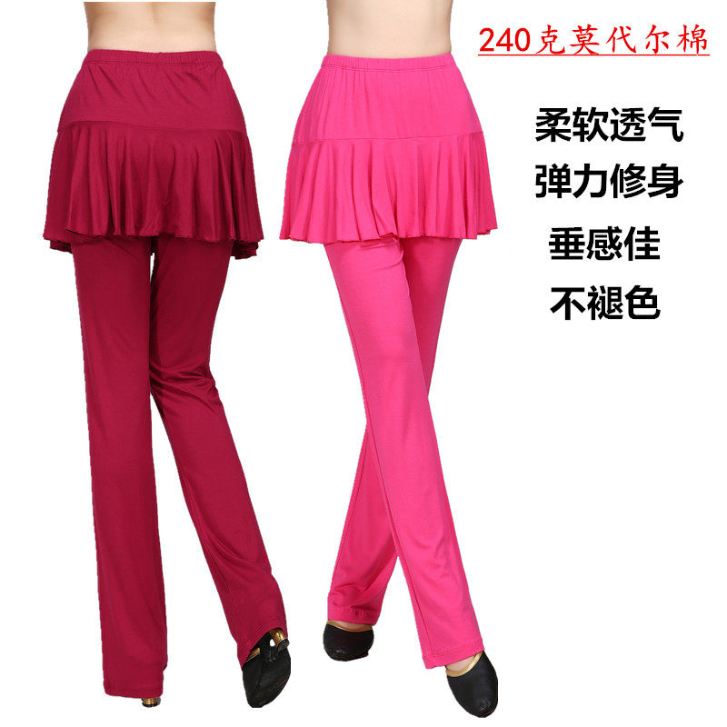春夏广场舞裤女新款裙裤跳舞裤裙拉丁舞长裤微喇莫代尔舞蹈裤练功