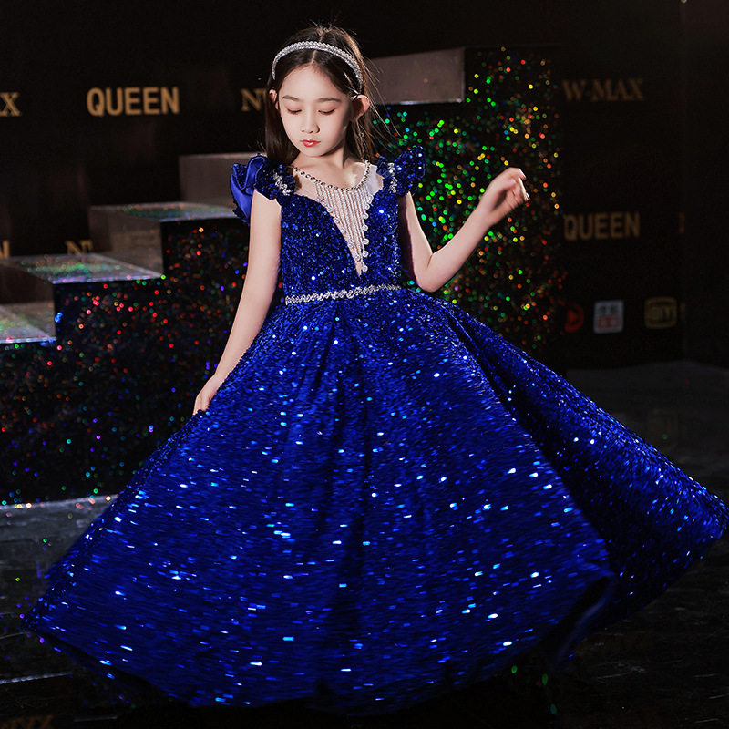 儿童主持人礼服公主裙蓬蓬裙重工女童洋气走秀钢琴演奏演出服亮片