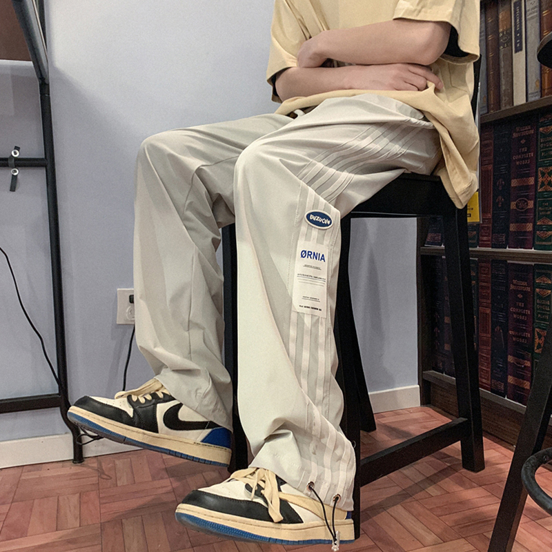 迈特优美式三条杠冰丝裤子男款宽松直筒运动裤秋季薄款休闲裤