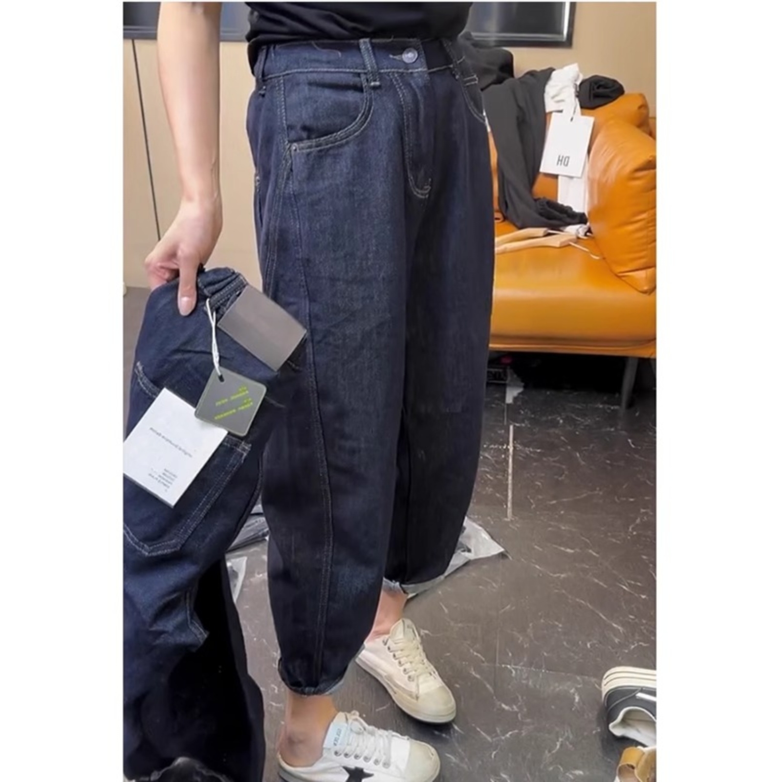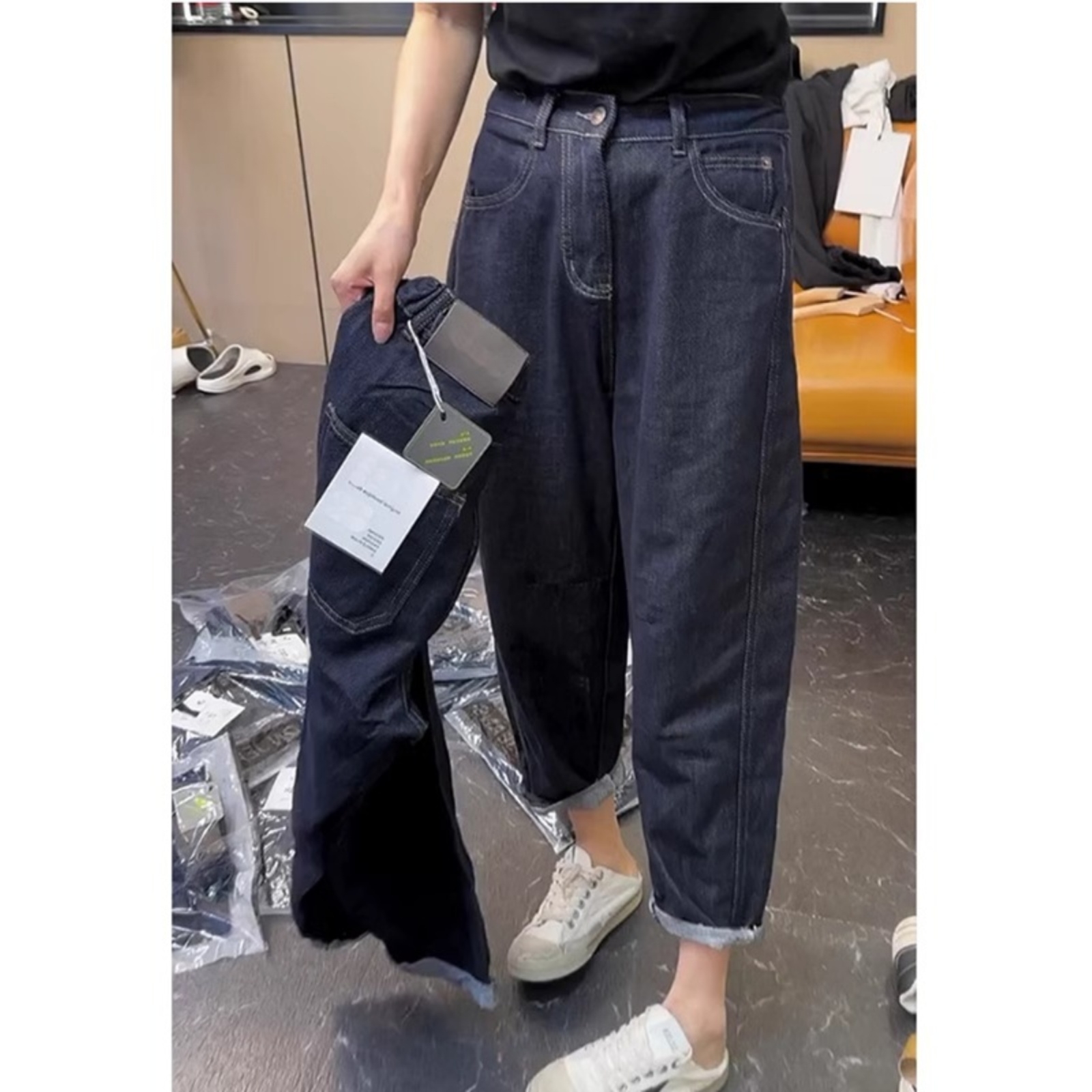 2025年夏季薄款高腰弹力哈伦牛仔裤女大码胖mm宽松显瘦九分老爹裤