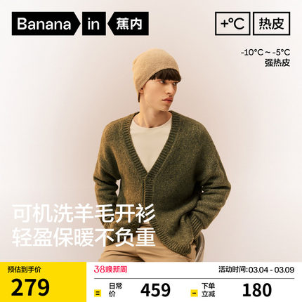 蕉内热皮503+++男士锁温开衫毛衣保暖宽松休闲羊毛针织衫外套新款