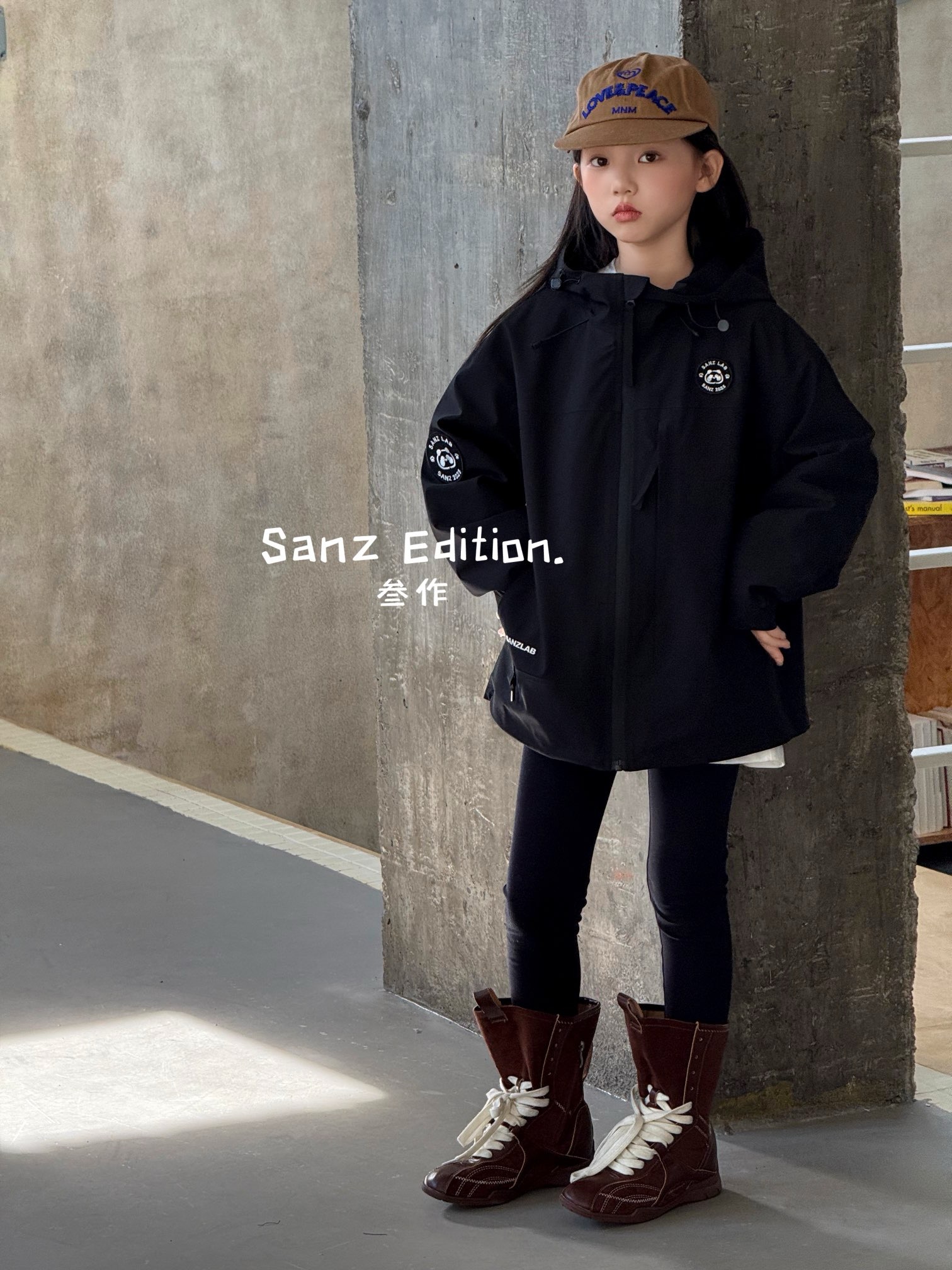 现货2025秋冬叁作波拉BORA韩国童装儿童加绒连帽户外冲锋衣外套