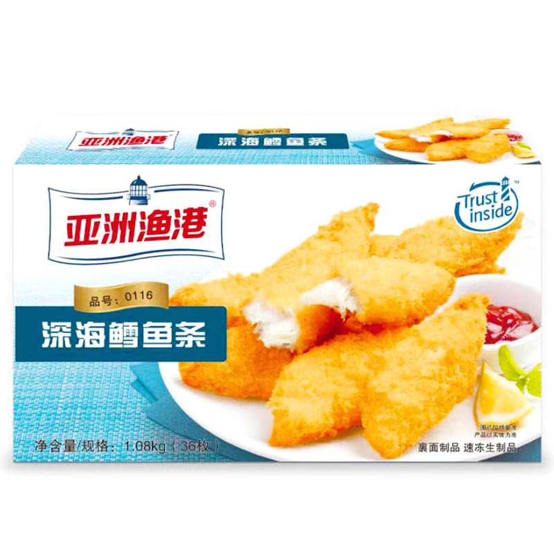 亚洲渔港深海鳕鱼条西餐鳕鱼排海鲜油炸冷冻半成品小吃36枚/盒