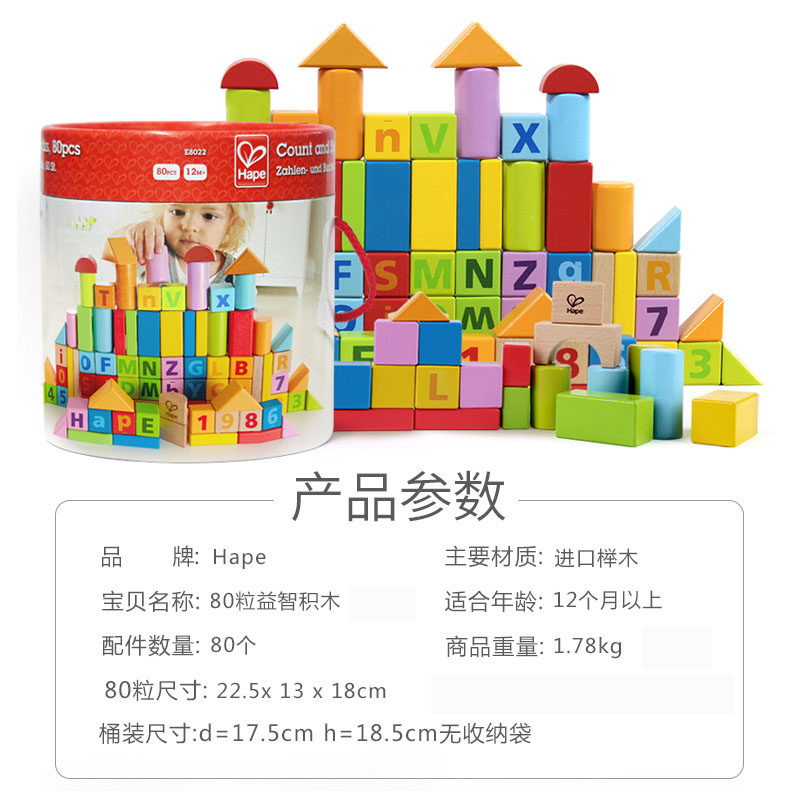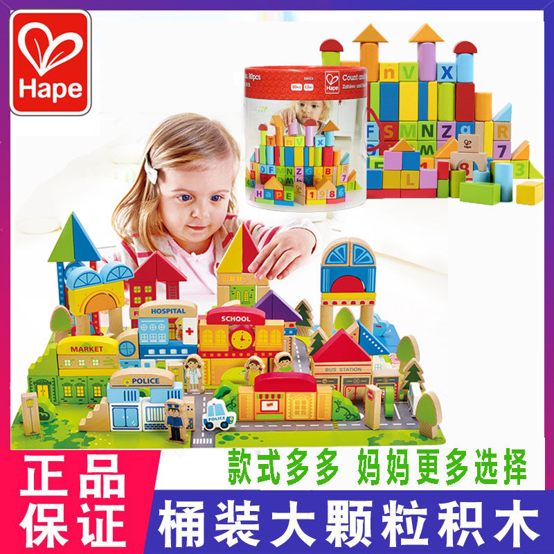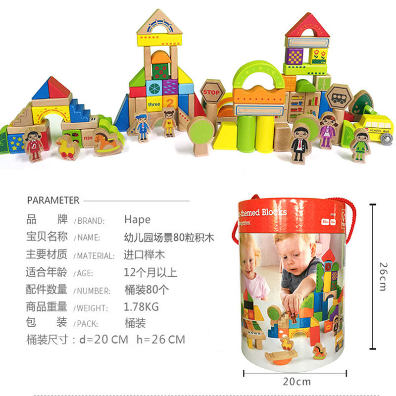 Hape智趣乐园火车积木桶1-6岁益智力动脑玩具婴幼儿宝宝木制城堡