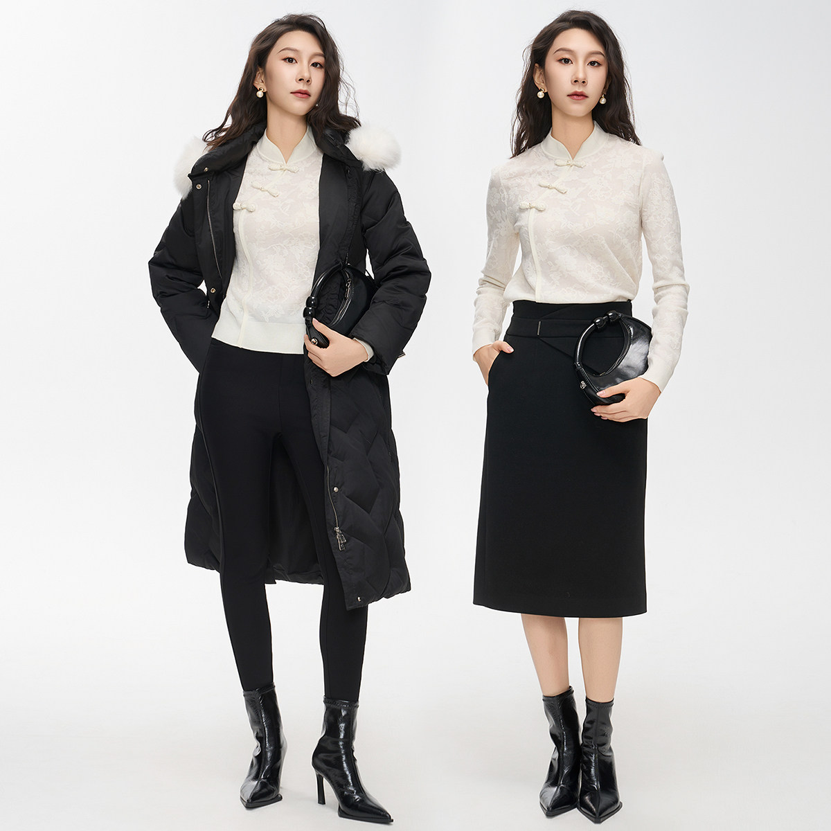 【商场同款】曼诺比菲冬季新中式盘扣长袖衬衫上衣女