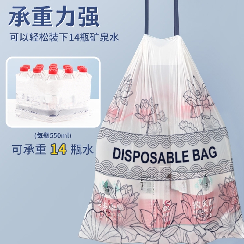 免撕抽绳垃圾袋加厚家用手提式加大超厚厨房印花清洁大号塑料袋