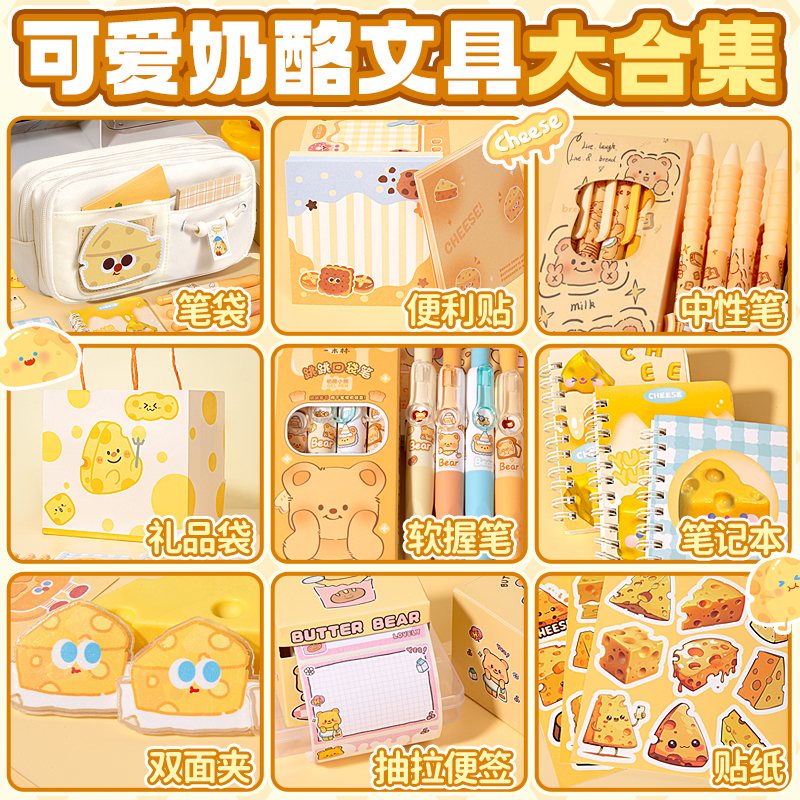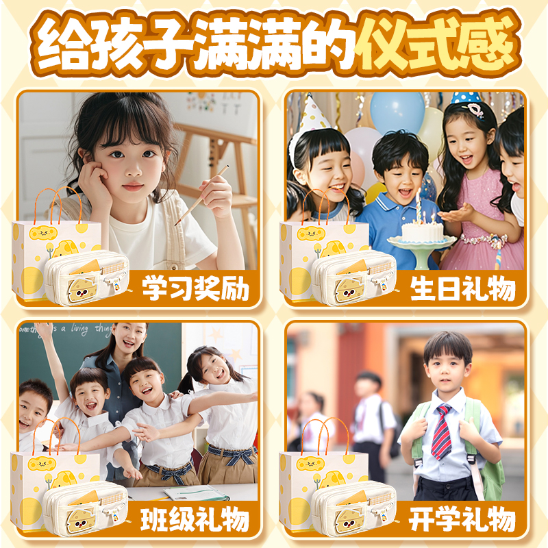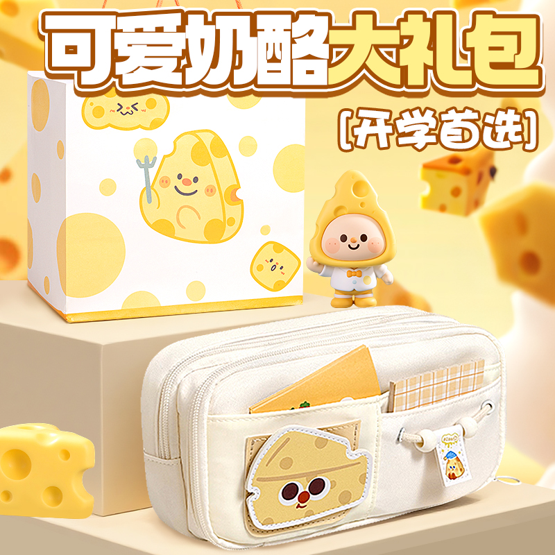 全套奶酪!笔袋女生2025新款超火高颜值ins风小学生大容量文具盒女孩款可爱多功能文具袋初中男生铅笔盒套装