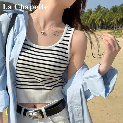 拉夏贝尔黑白条纹针织吊带2025夏季新款绝美背心内搭外穿打底上衣