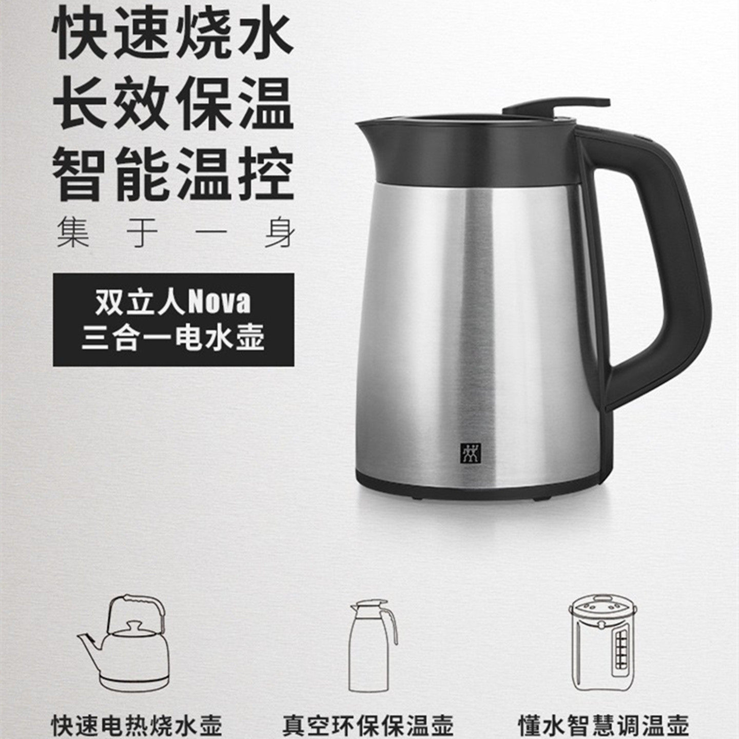 德国双立人三合一多功能电热水壶不锈钢真空保温壶智能调温壶1.7L