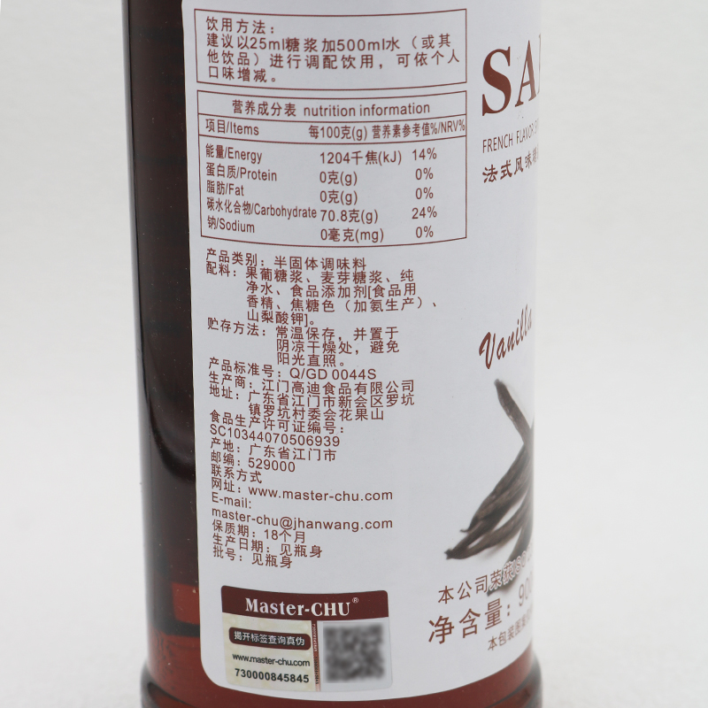 沙布列香草糖浆调味果糖浓缩香蜜冰淇淋奶茶咖啡店专用900ml果露