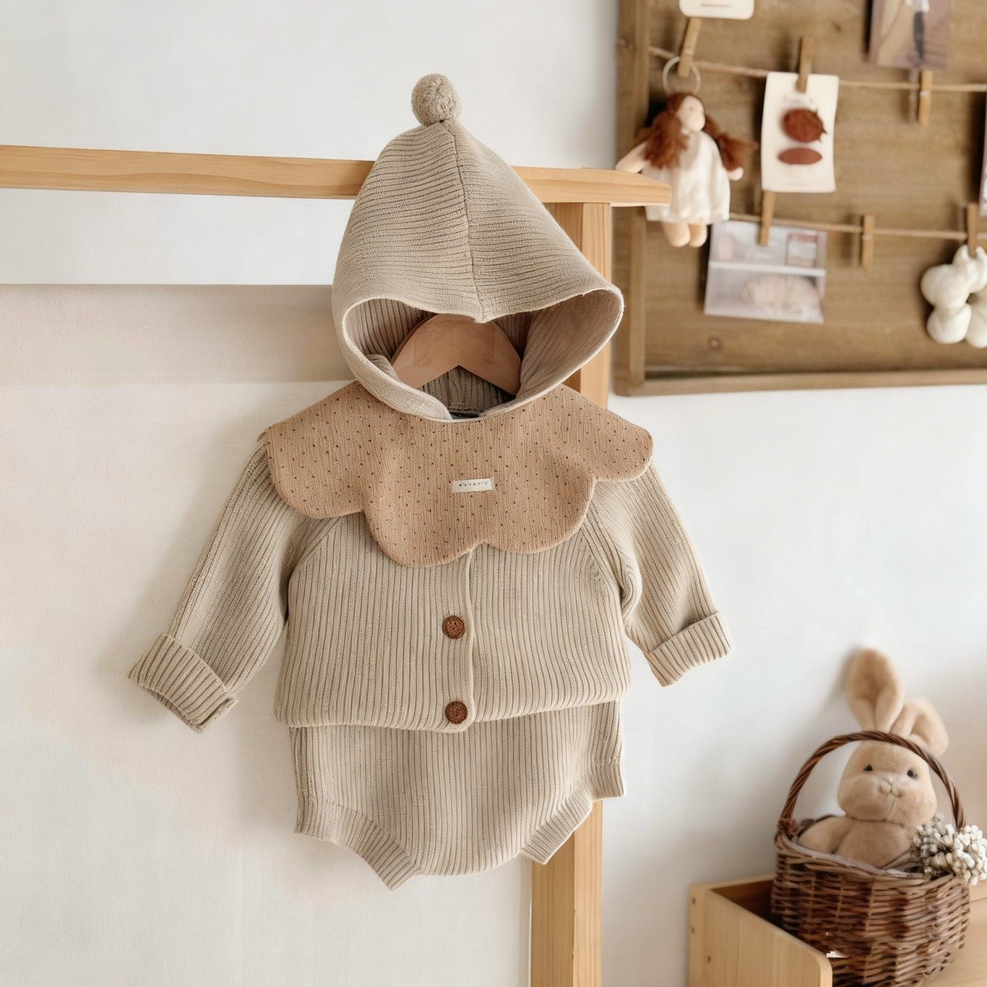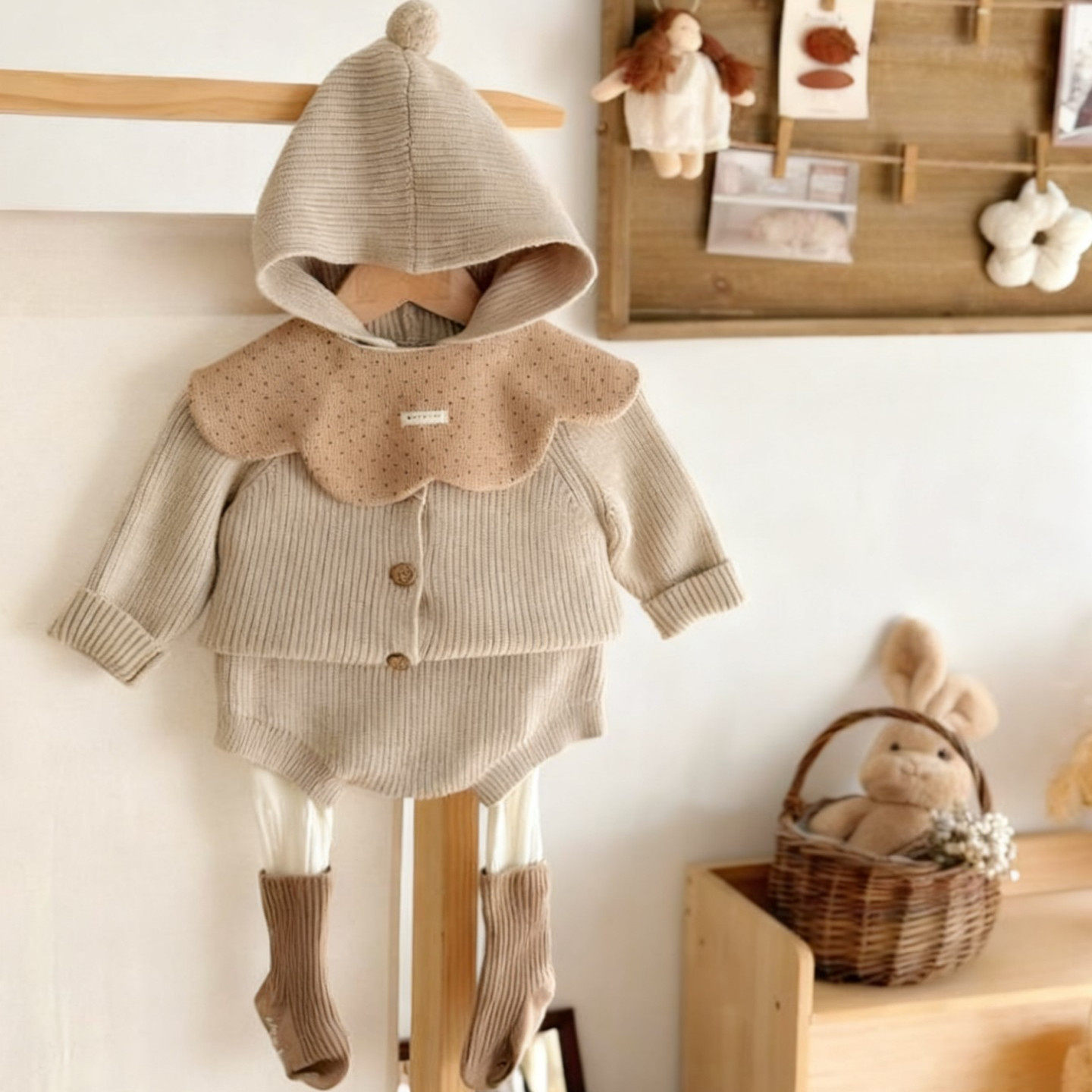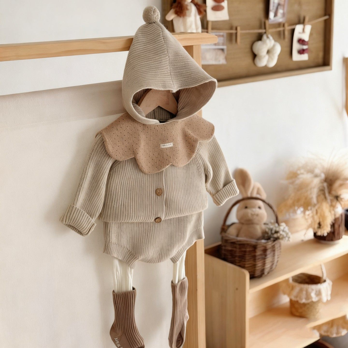 婴幼儿秋冬新款针织套装男女宝宝韩版连帽毛衣外套包屁短裤两件套
