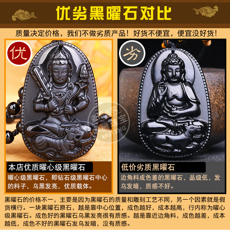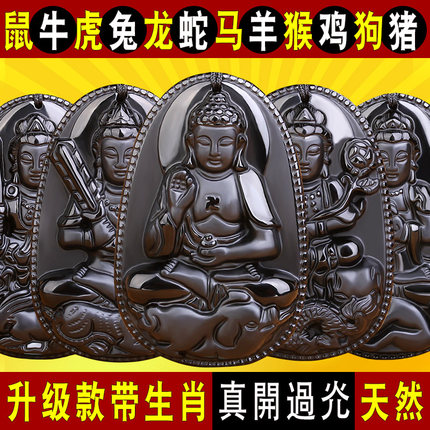 天然正品黑曜石本命佛吊坠虚空藏大日如来普贤菩萨男属虎兔项坠女
