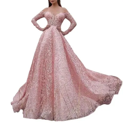 大摆欧美2025婚纱镂空刺绣连衣裙一字肩跨境礼服女装性感夏季新款