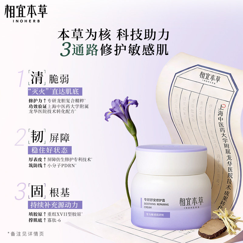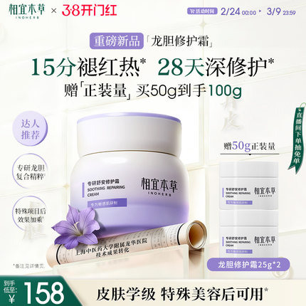 【达人推荐】相宜本草龙胆专研舒安修护霜修护舒缓保湿补水面霜