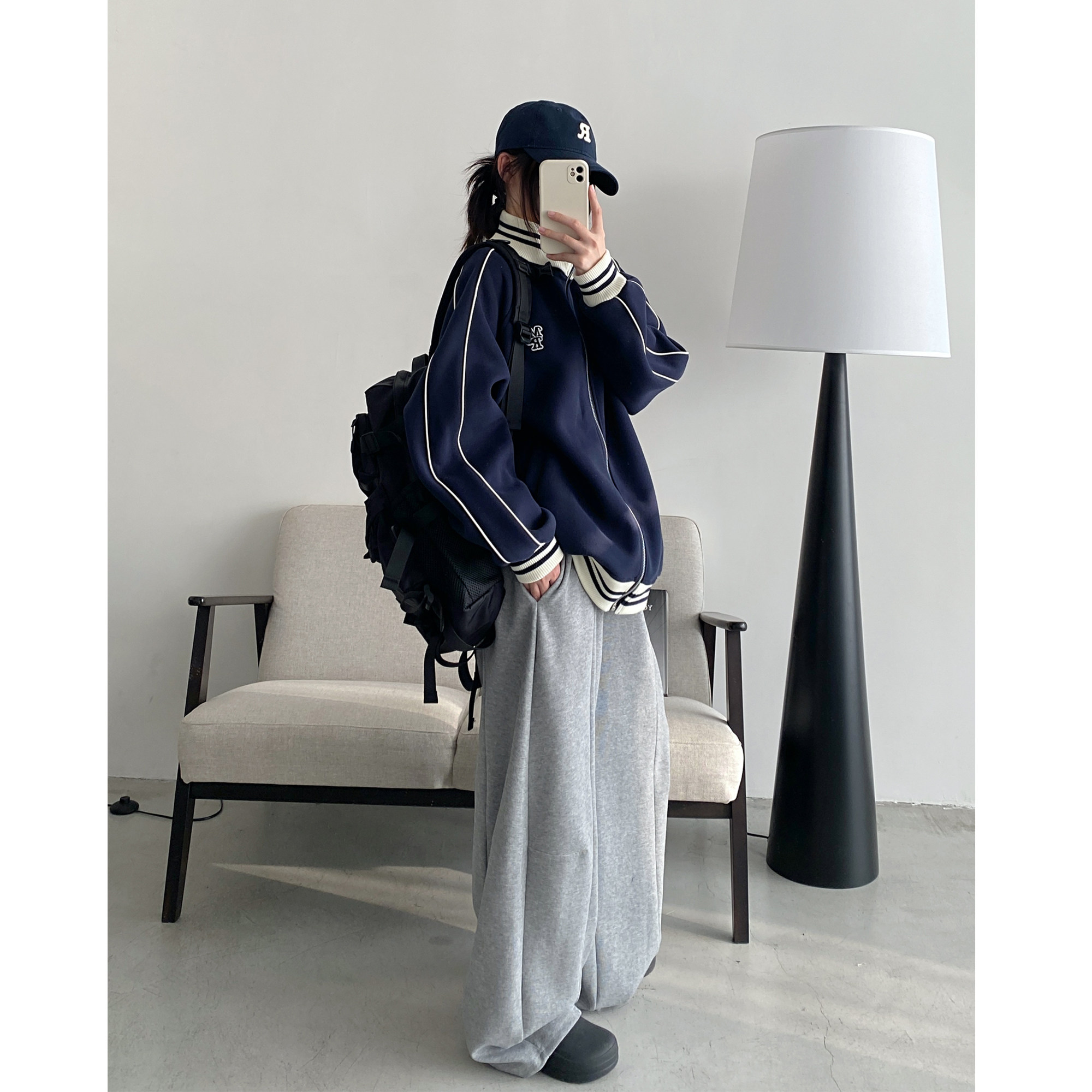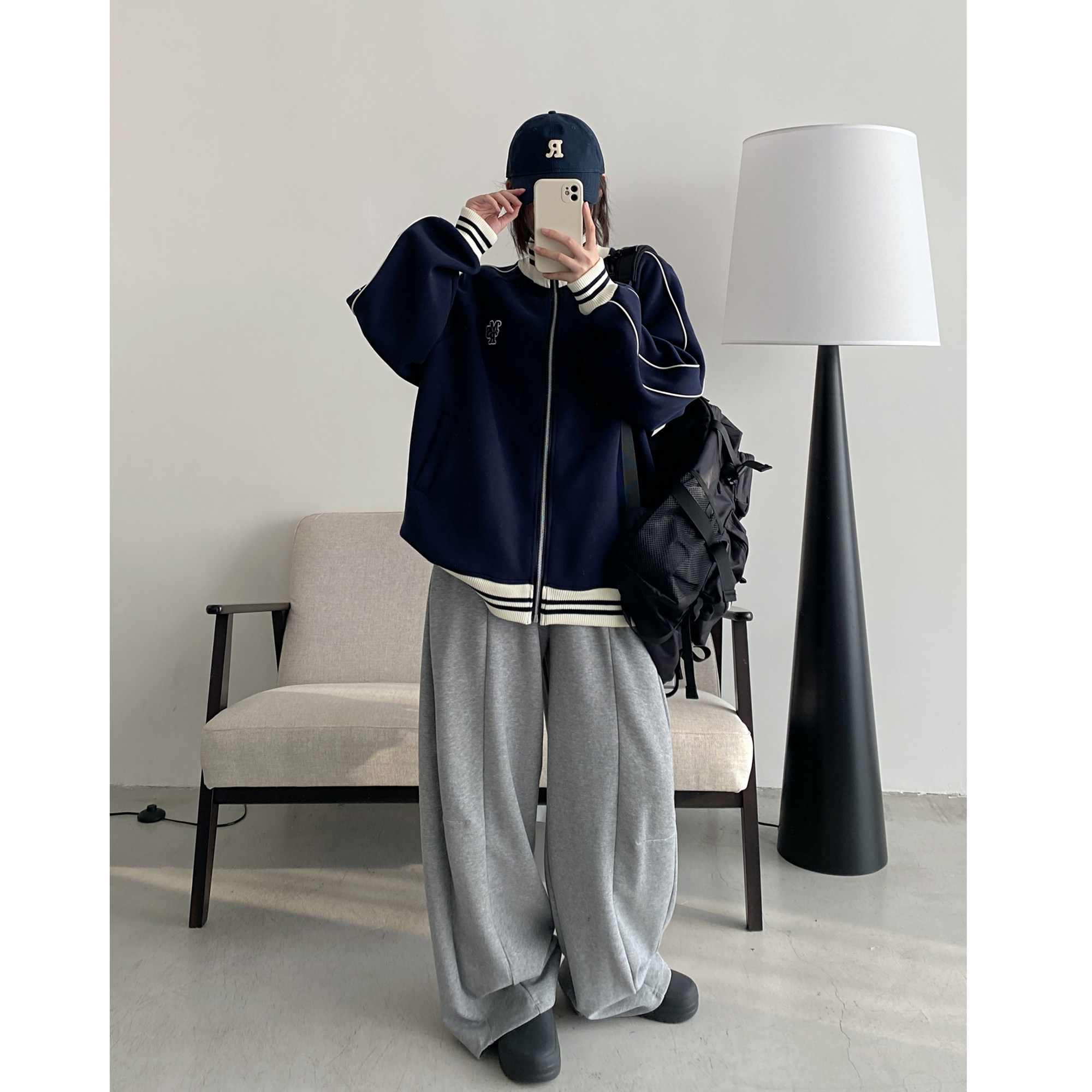 【清仓价】松弛感棒球服女休闲开衫立领上衣春秋季情侣款夹克外套