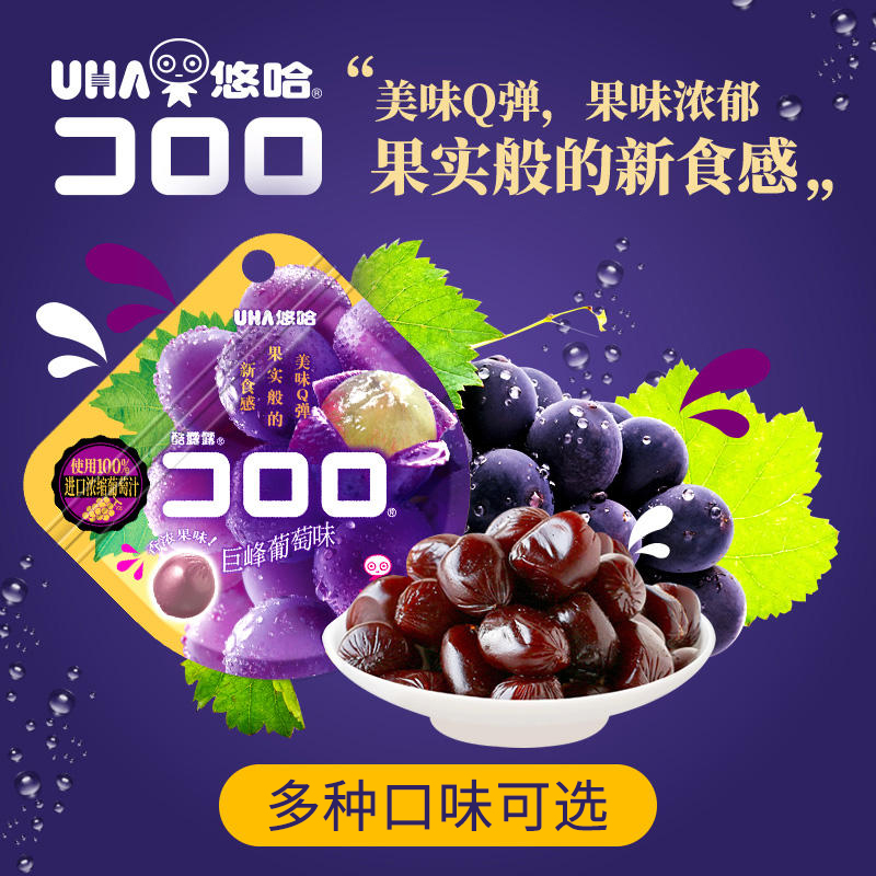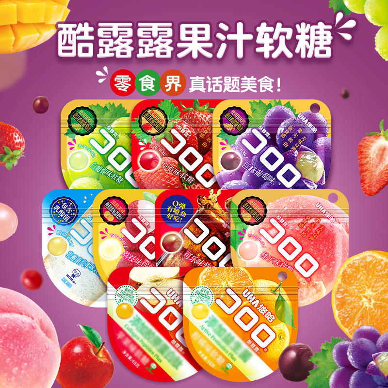 悠哈酷露露果汁软糖紫葡萄草莓桃子味觉糖学生开学小零食网红糖果