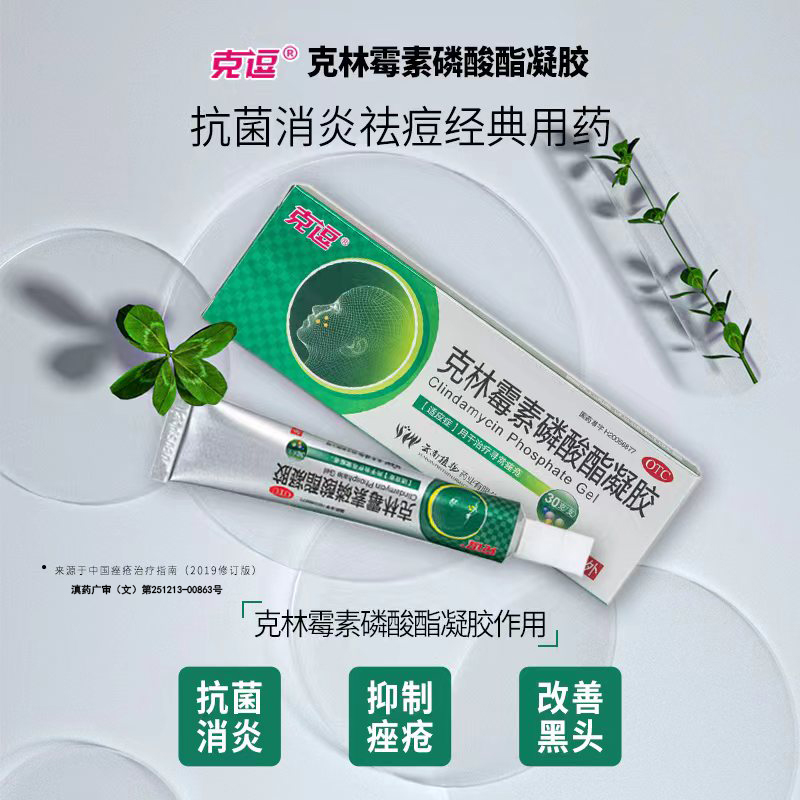 克逗克林霉素磷酸酯凝胶官方祛痘粉刺红肿闭口外用医用痘痘正品