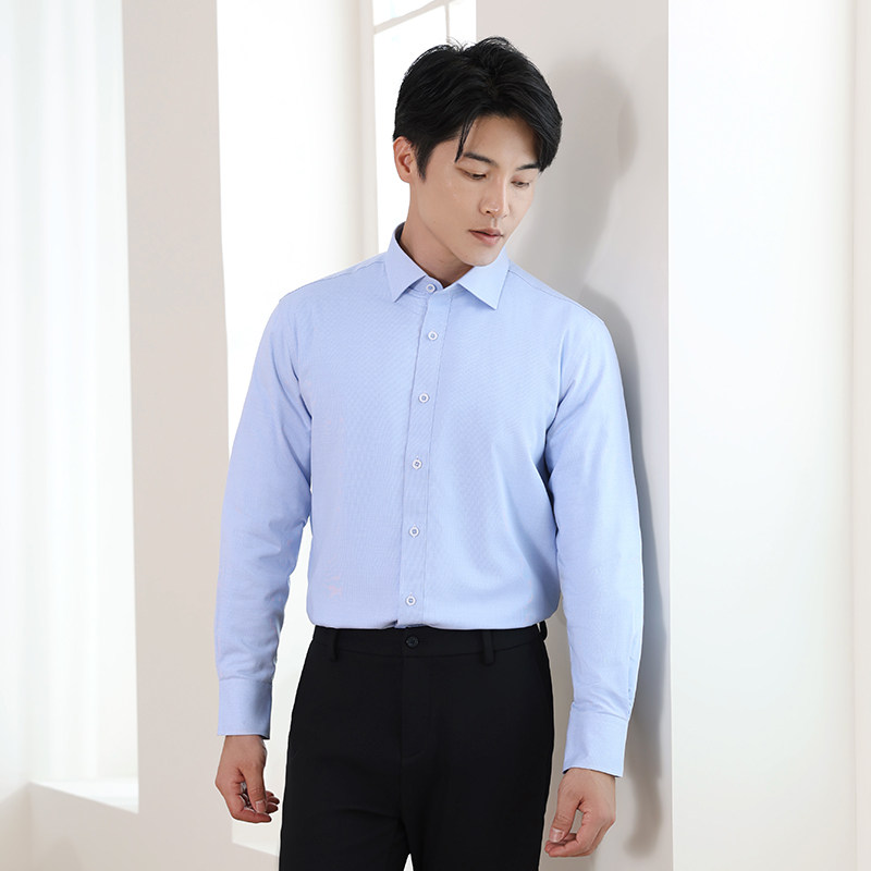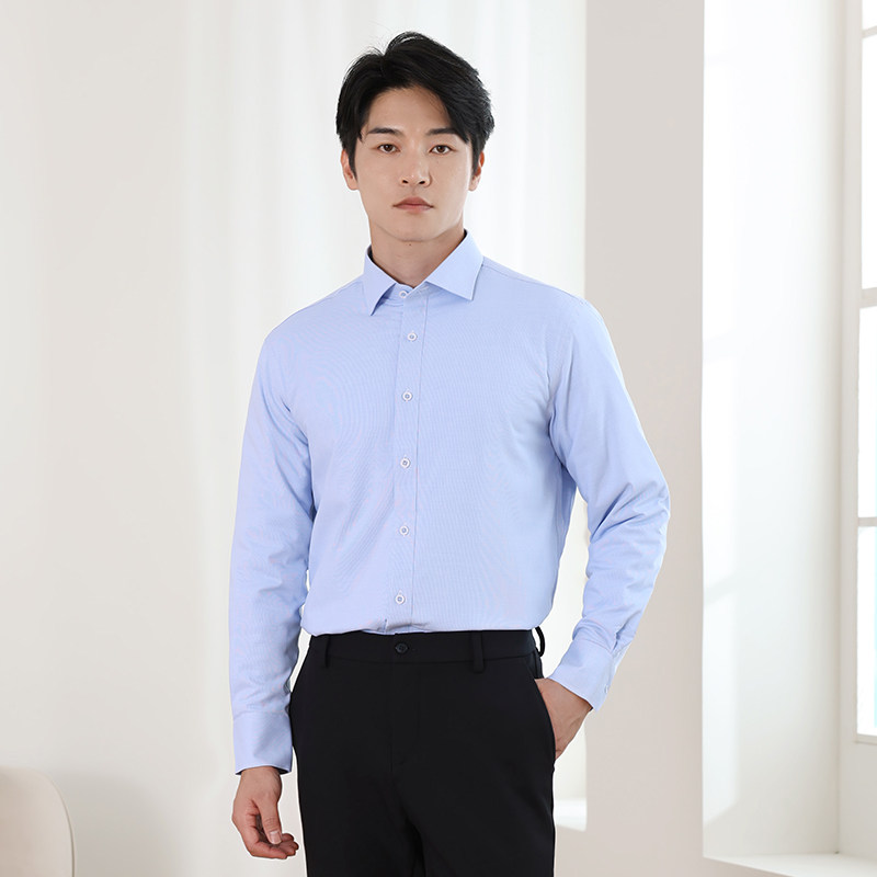 乔治白男士秋冬长袖衬衫尖领蓝白色合体版热保护商务休闲男装上衣