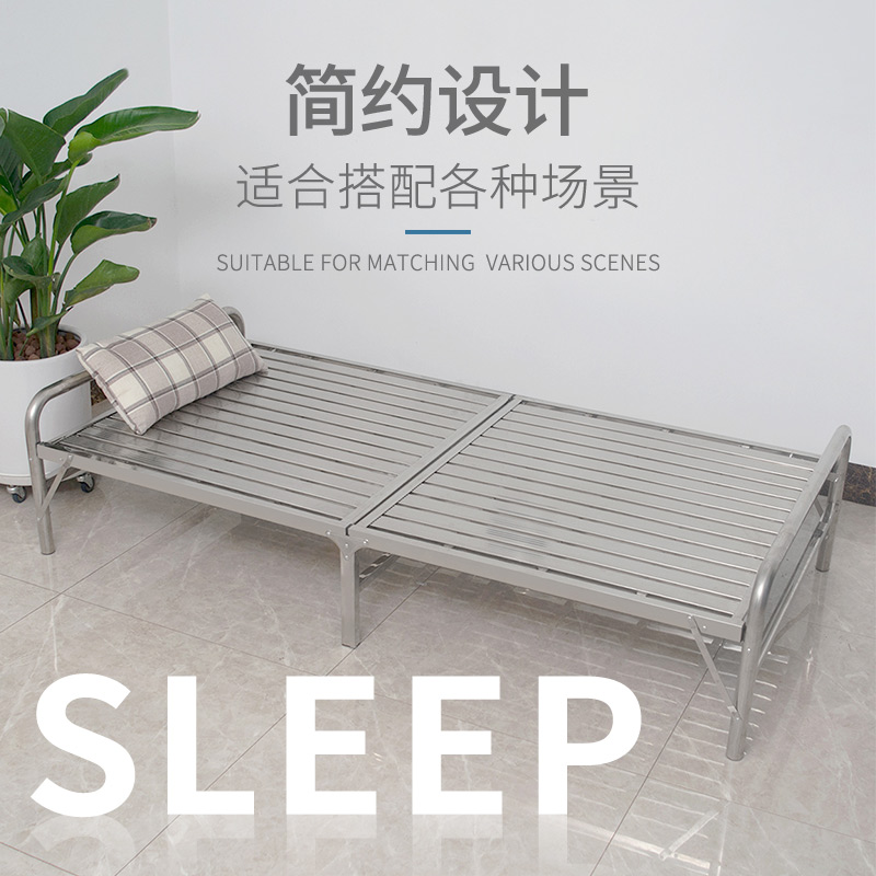 不锈钢折叠床家用简易床办公室午休午睡床H1米1.2米单双人床铁艺
