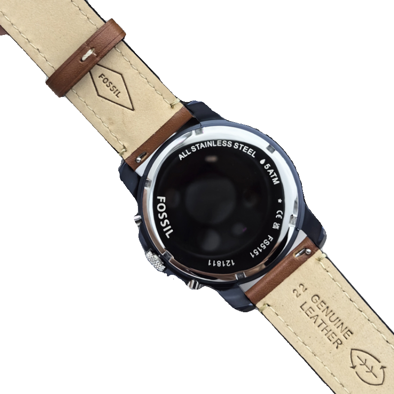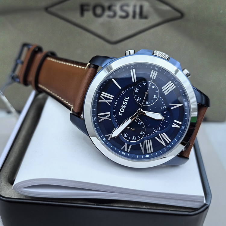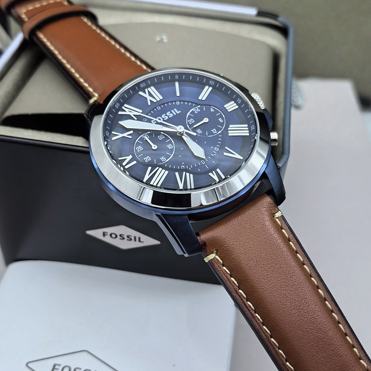 FOSSIL手表真皮表带轻奢时尚蓝三眼计时商务休闲石英机芯防水男表