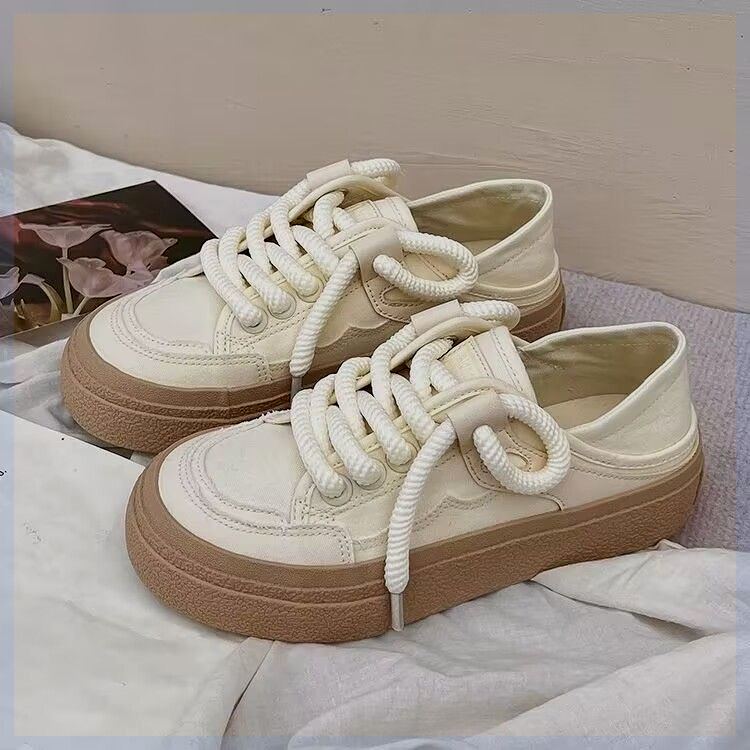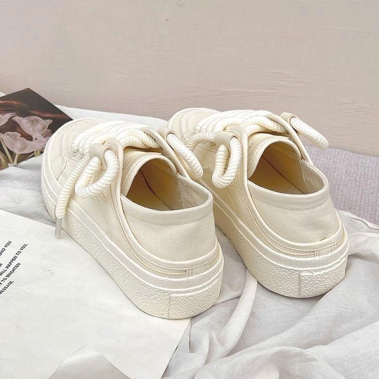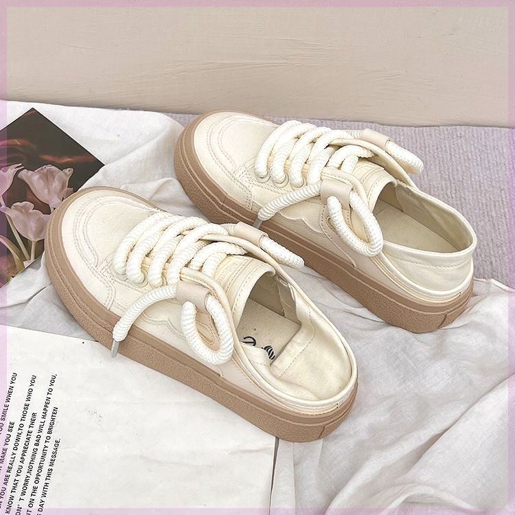 2024夏季新款奶油色两穿小白鞋女一脚蹬懒人鞋休闲透气半拖帆布鞋
