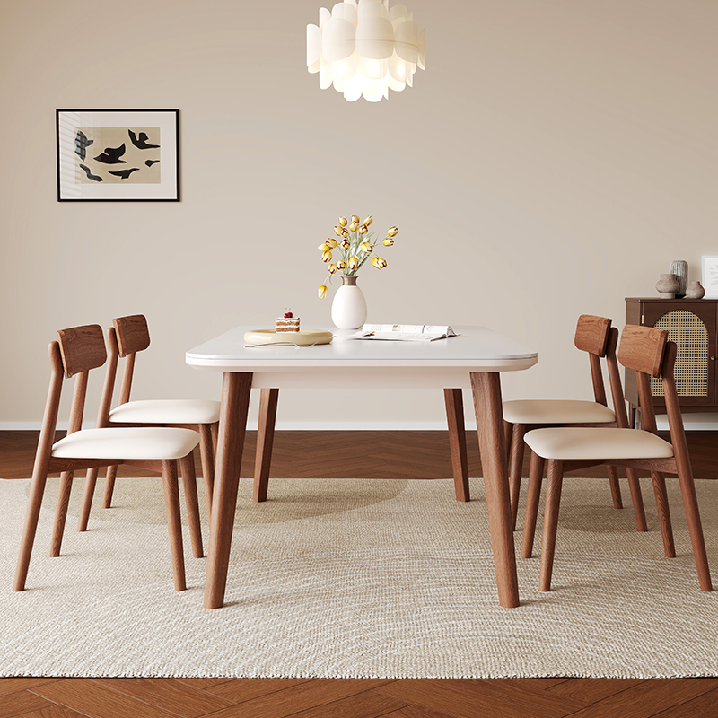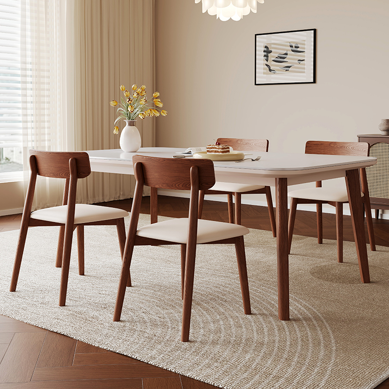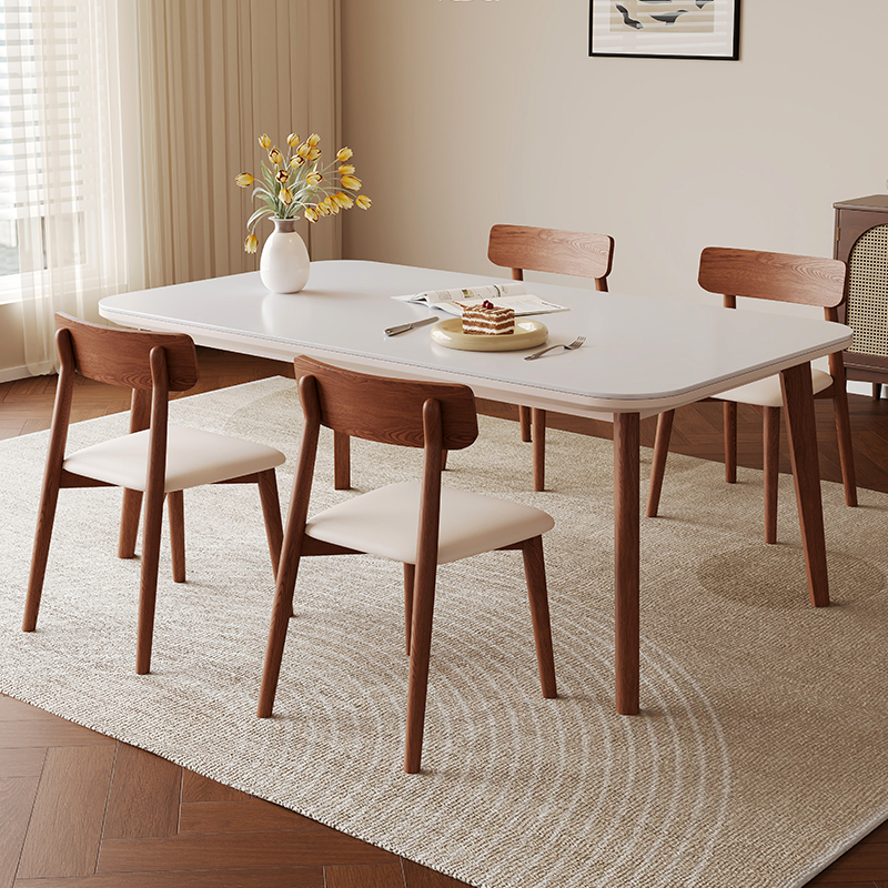 佳嘉美家居2025年新款岩板实木餐桌椅组合家用高端长方形吃饭桌