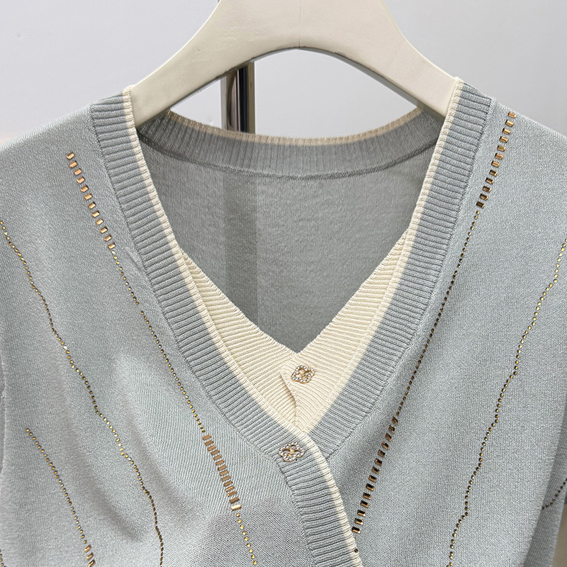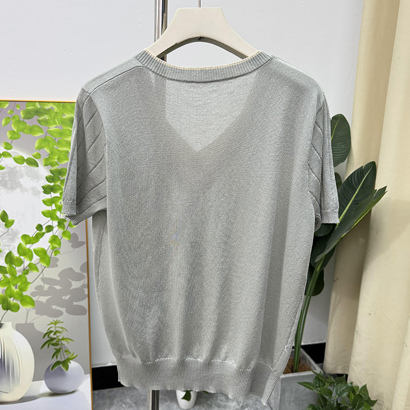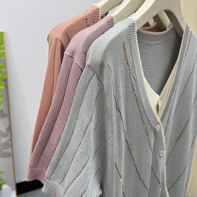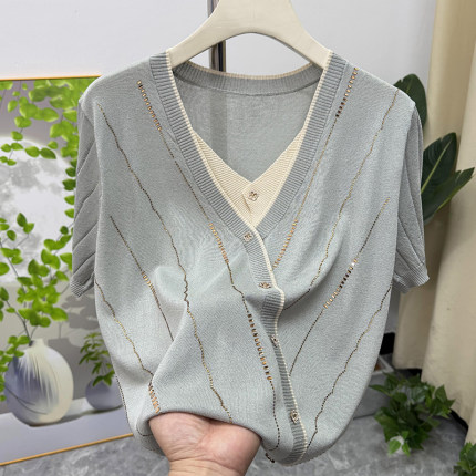 中年妈妈夏装时尚冰丝T恤女假两件上衣洋气年轻中老年短袖上衣女